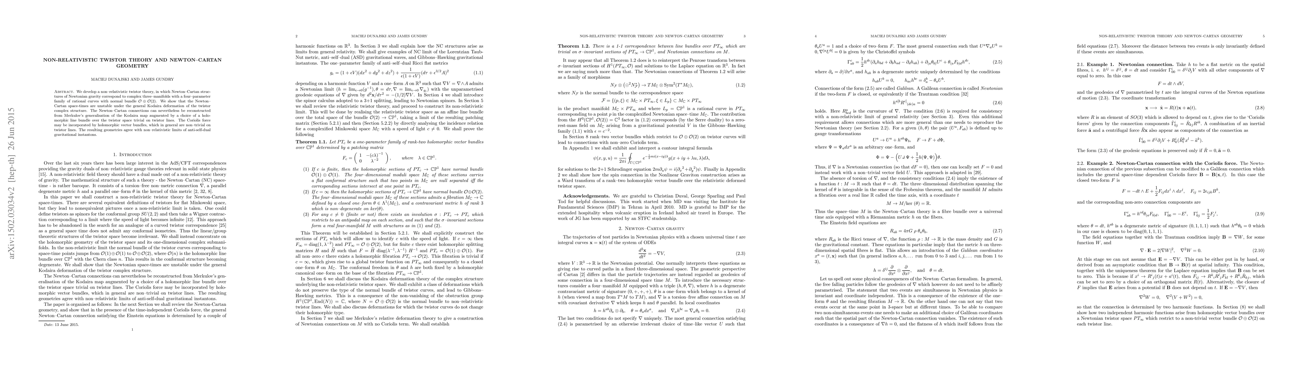 This paper develops a non-relativistic twistor theory where Newton-Cartan structures correspond to complex three-manifolds with specific rational curves. It demonstrates the instability of these structures under Kodaira deformation but shows they can be reconstructed using a modified Kodaira map and a holomorphic line bundle.