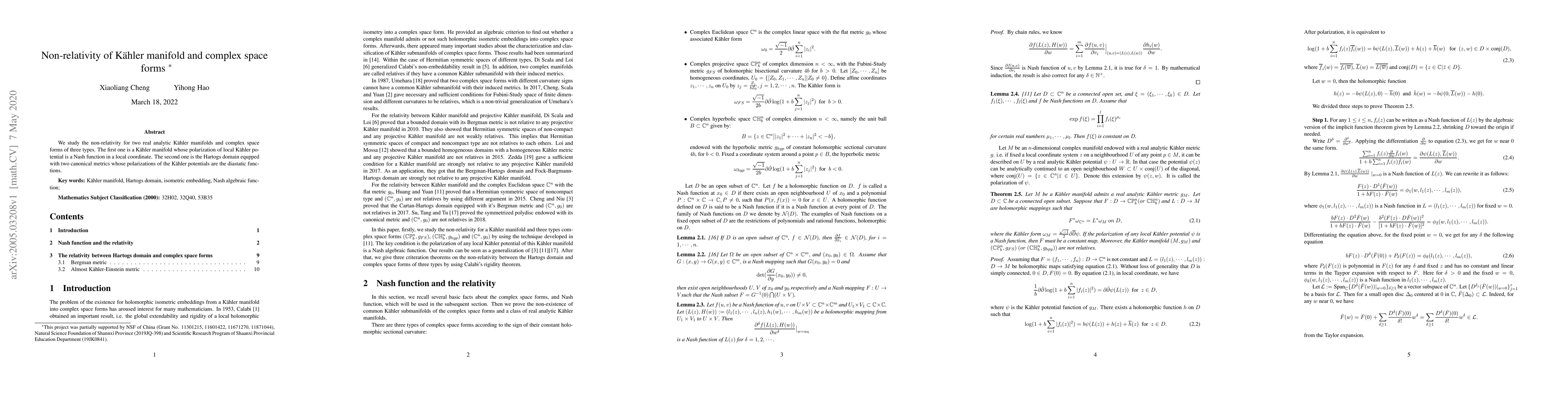 We study the non-relativity for two real analytic K\"ahler manifolds and complex space forms of three types. The first one is a K\"ahler manifold whose polarization of local K\"ahler potential is a Nash function in a local coordinate. The second one is the Hartogs domain equpped with two canonical metrics whose polarizations of the K\"ahler potentials are the diastatic functions.