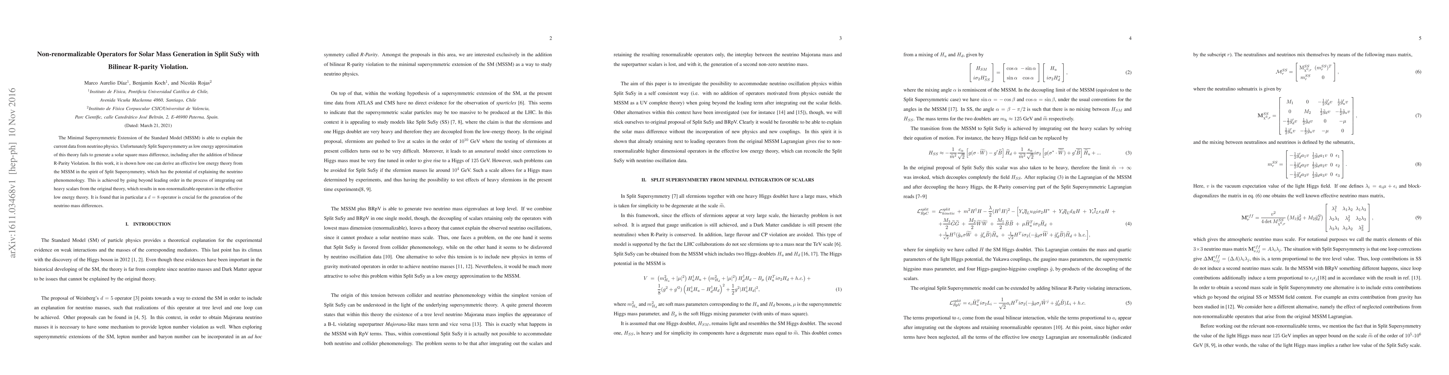 This paper explores the generation of solar mass differences in Split Supersymmetry (Split SuSy) with bilinear R-parity violation, showing that non-renormalizable operators, particularly a $d=8$ operator, are essential for explaining neutrino phenomenology. Despite efforts, traditional Split SuSy fails to achieve this, necessitating the inclusion of higher-order terms.