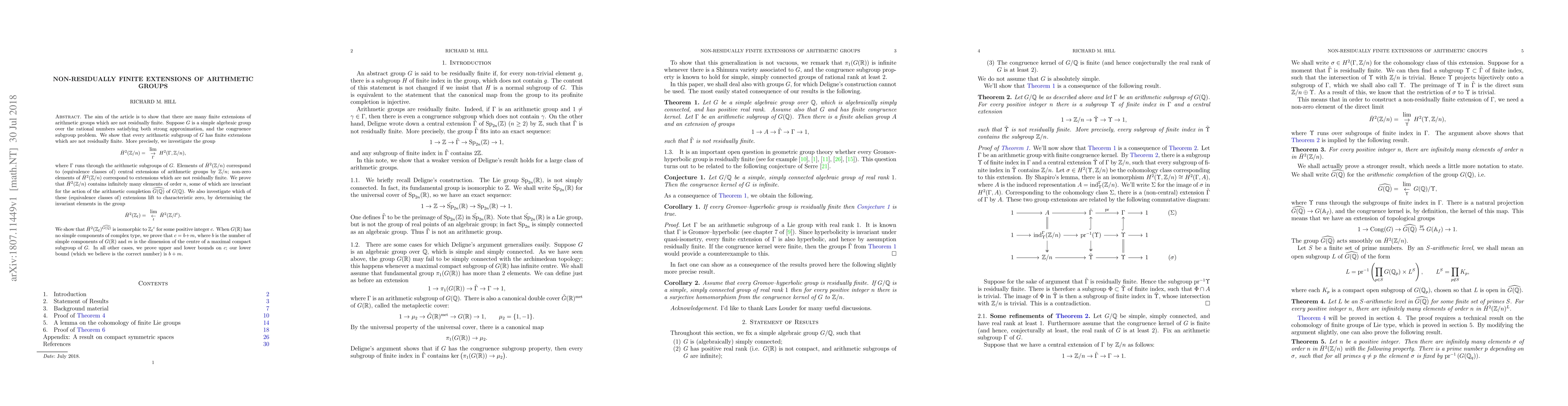 This paper demonstrates that arithmetic groups have finite extensions that are not residually finite, using the group $\bar H^2(\mathbb{Z}/n)$ to identify such extensions. It proves that $\bar H^2(\mathbb{Z}_l)^{\widehat{G(\mathbb{Q})}}$ is isomorphic to $\mathbb{Z}_l^c$, providing bounds on $c$ depending on the structure of $G(\mathbb{R})$.