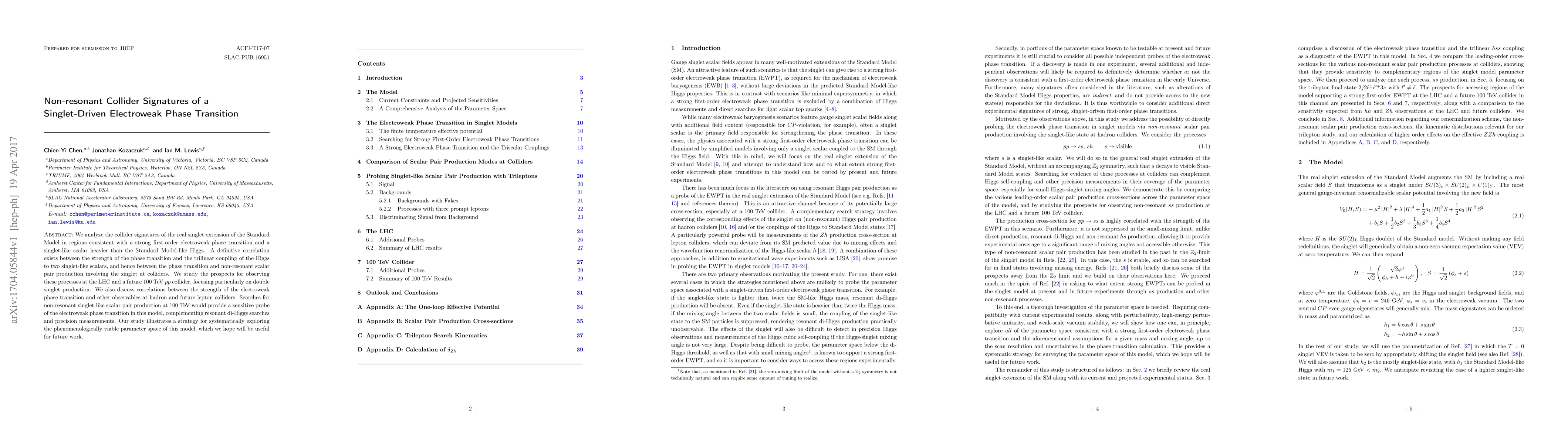 This paper explores collider signatures of a real singlet extension of the Standard Model, focusing on non-resonant scalar pair production linked to a strong first-order electroweak phase transition. It examines prospects for observing these processes at the LHC and a future 100 TeV collider, highlighting the potential of such searches to probe the electroweak phase transition.