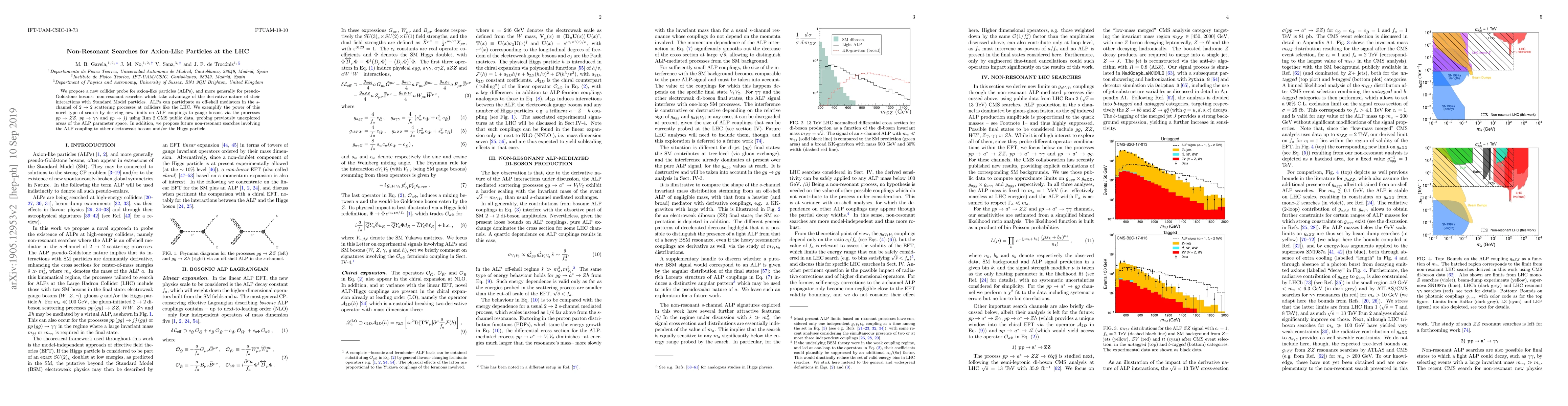 This paper proposes a novel non-resonant search method for axion-like particles (ALPs) at the LHC, leveraging their derivative interactions. Using Run 2 CMS data, it sets new limits on ALP couplings to gauge bosons through processes like $p p \to Z Z$, $p p \to \gamma \gamma$, and $p p \to j j$, and suggests future searches for ALP couplings to electroweak bosons and the Higgs.