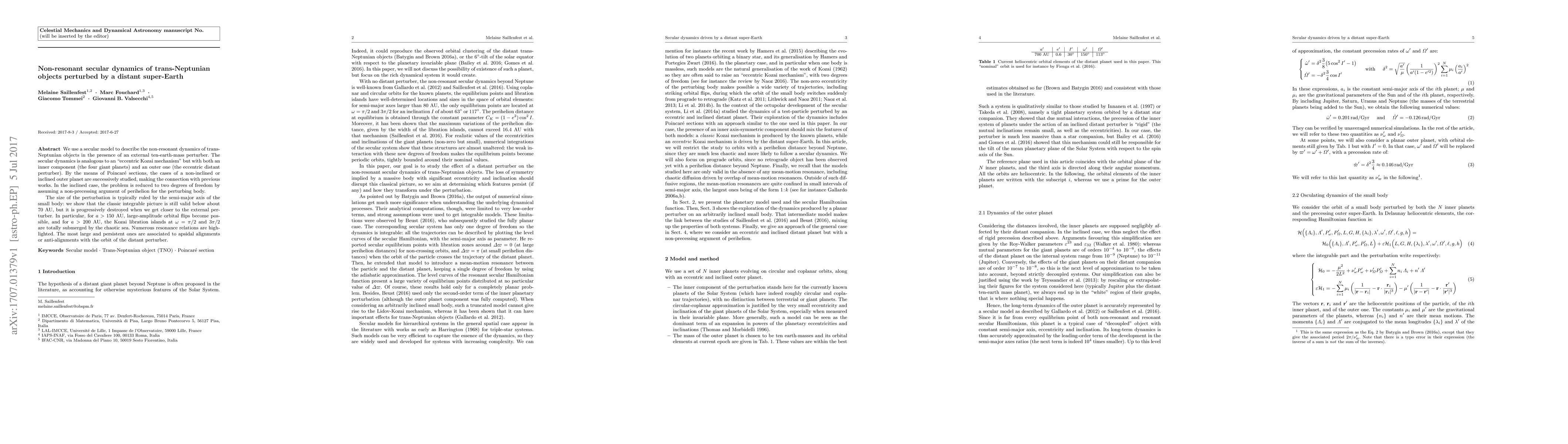 We use a secular model to describe the non-resonant dynamics of trans-Neptunian objects in the presence of an external ten-earth-mass perturber. The secular dynamics is analogous to an "eccentric Kozai mechanism" but with both an inner component (the four giant planets) and an outer one (the eccentric distant perturber). By the means of Poincar\'e sections, the cases of a non-inclined or inclined outer planet are successively studied, making the connection with previous works. In the inclined case, the problem is reduced to two degrees of freedom by assuming a non-precessing argument of perihelion for the perturbing body. The size of the perturbation is typically ruled by the semi-major axis of the small body: we show that the classic integrable picture is still valid below about 70 AU, but it is progressively destroyed when we get closer to the external perturber. In particular, for a>150 AU, large-amplitude orbital flips become possible, and for a>200 AU, the Kozai libration islands are totally submerged by the chaotic sea. Numerous resonance relations are highlighted. The most large and persistent ones are associated to apsidal alignments or anti-alignments with the orbit of the distant perturber.