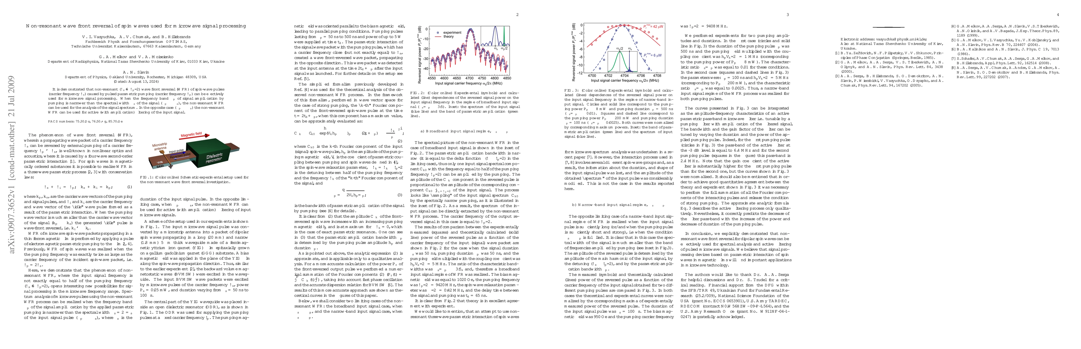 It is demonstrated that non-resonant wave front reversal (WFR) of spin-wave pulses caused by pulsed parametric pumping can be effectively used for microwave signal processing. When the frequency band of signal amplification by pumping is narrower than the spectral width of the signal, the non-resonant WFR can be used for the analysis of the signal spectrum. In the opposite case the non-resonant WFR can be used for active (with amplification) filtering of the input signal.