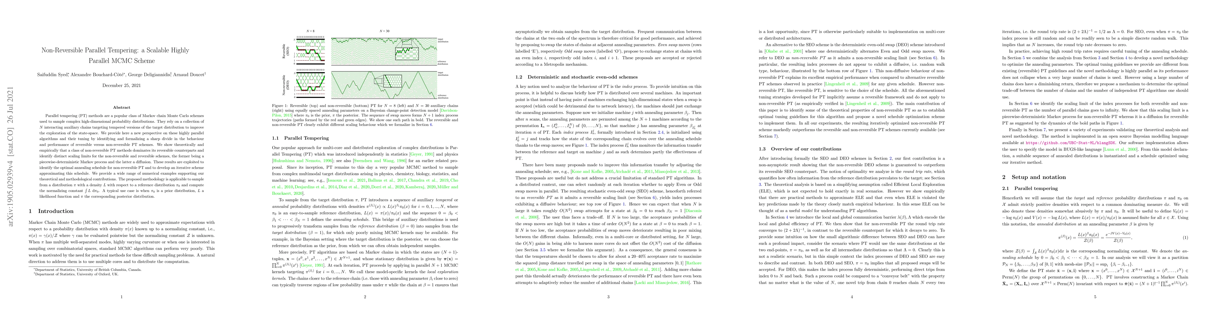 Researchers developed a new approach to parallel tempering, a method for exploring complex distributions, showing that non-reversible methods can outperform reversible ones in certain cases.