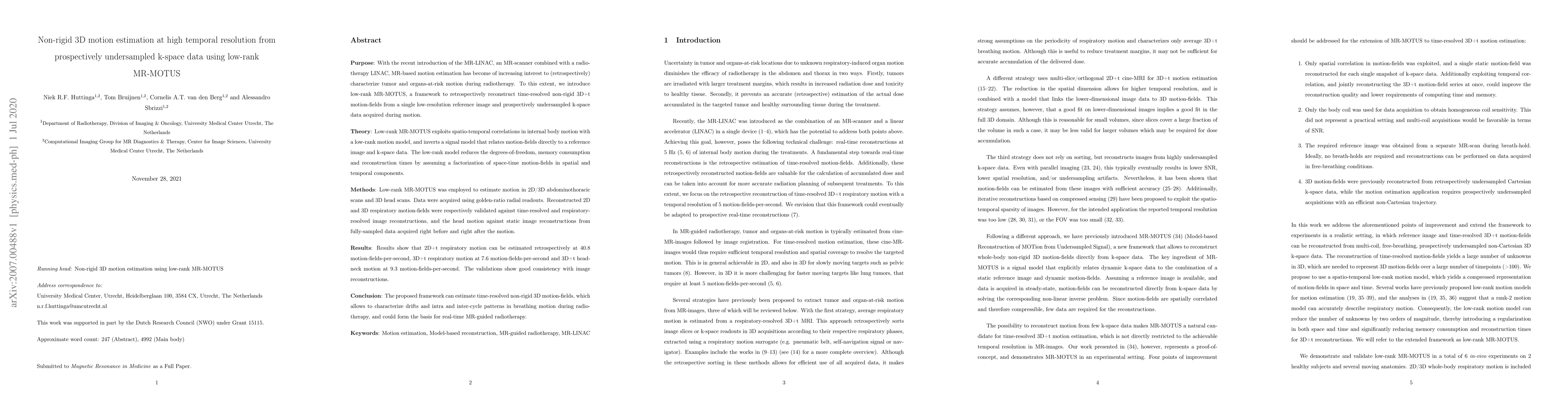 This paper introduces low-rank MR-MOTUS, a framework for estimating non-rigid 3D motion-fields from prospectively undersampled k-space data, enabling high-resolution motion characterization during radiotherapy. The method reconstructs motion-fields at high temporal resolution, validated against image reconstructions, showing potential for real-time MR-guided radiotherapy.