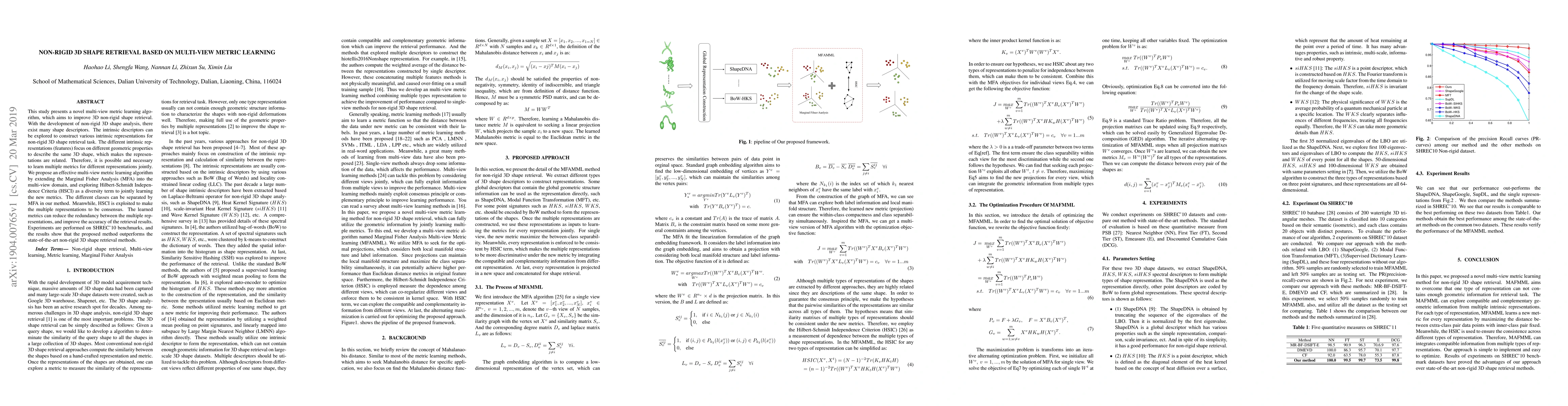 The paper proposes a multi-view metric learning algorithm for non-rigid 3D shape retrieval, extending Marginal Fisher Analysis (MFA) into the multi-view domain and employing Hilbert-Schmidt Independence Criteria (HSCI) as a diversity term for joint metric learning.