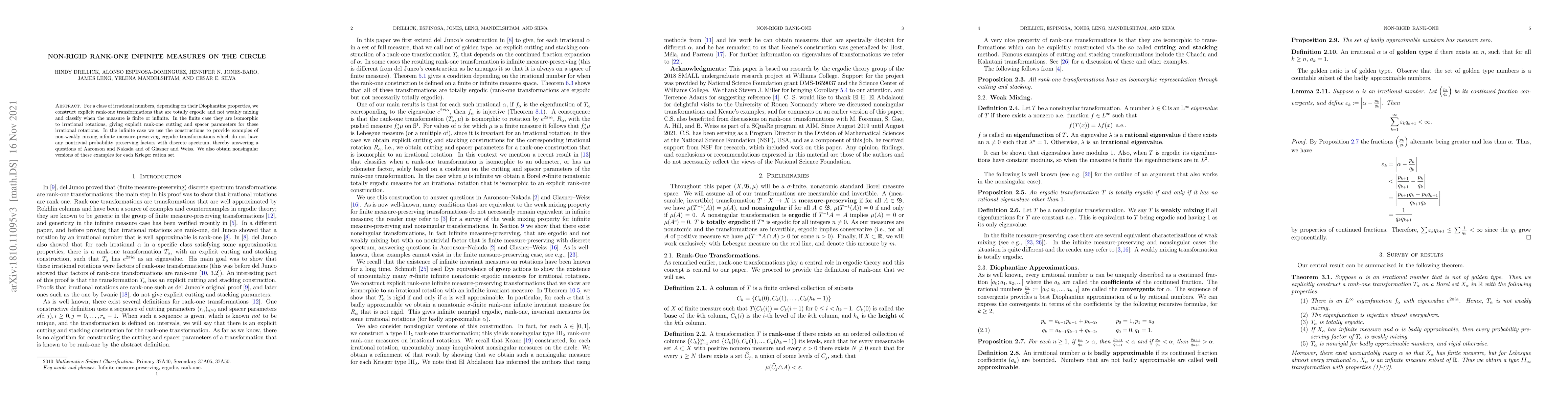This paper constructs explicit rank-one transformations on the circle based on the Diophantine properties of certain irrational numbers, classifying them as finite or infinite measures. It resolves questions regarding non-weakly mixing infinite measure-preserving ergodic transformations without nontrivial factors with discrete spectrum.