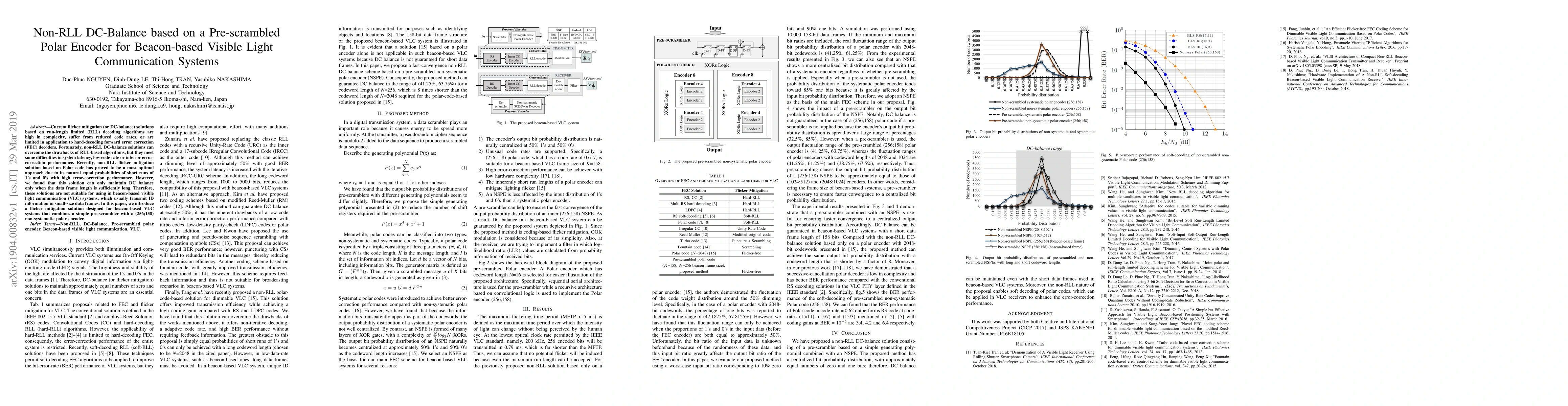 The paper proposes a non-RLL DC-balance scheme for beacon-based VLC systems using a pre-scrambler combined with a non-systematic polar encoder (NSPE).