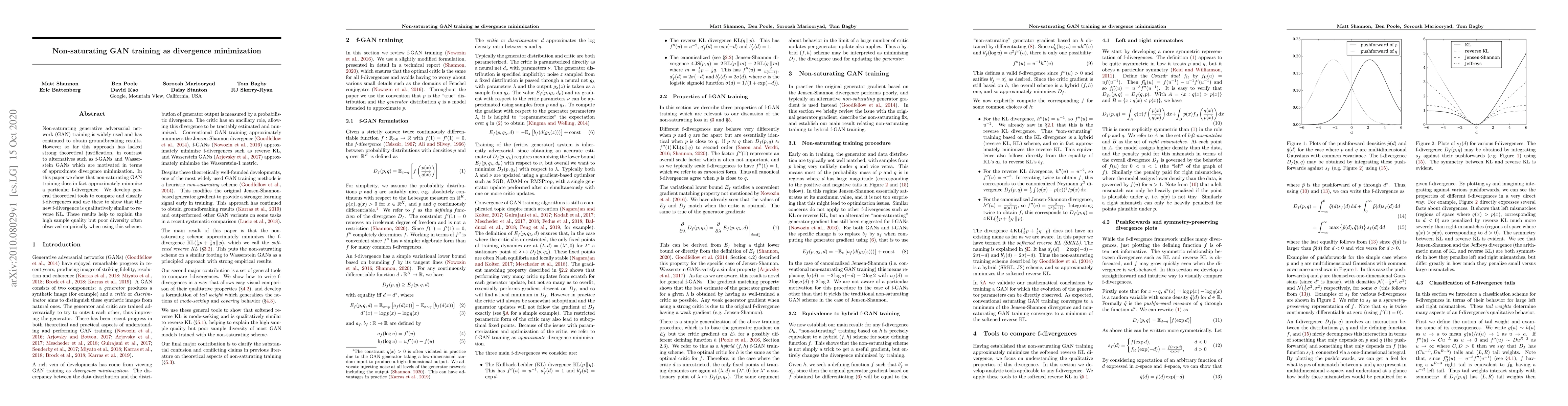 This paper demonstrates that non-saturating GAN training approximates the minimization of a specific f-divergence, providing a theoretical justification for its success. It introduces new tools to compare f-divergences and shows that the new divergence is similar to reverse KL, explaining the observed high sample quality but poor diversity.