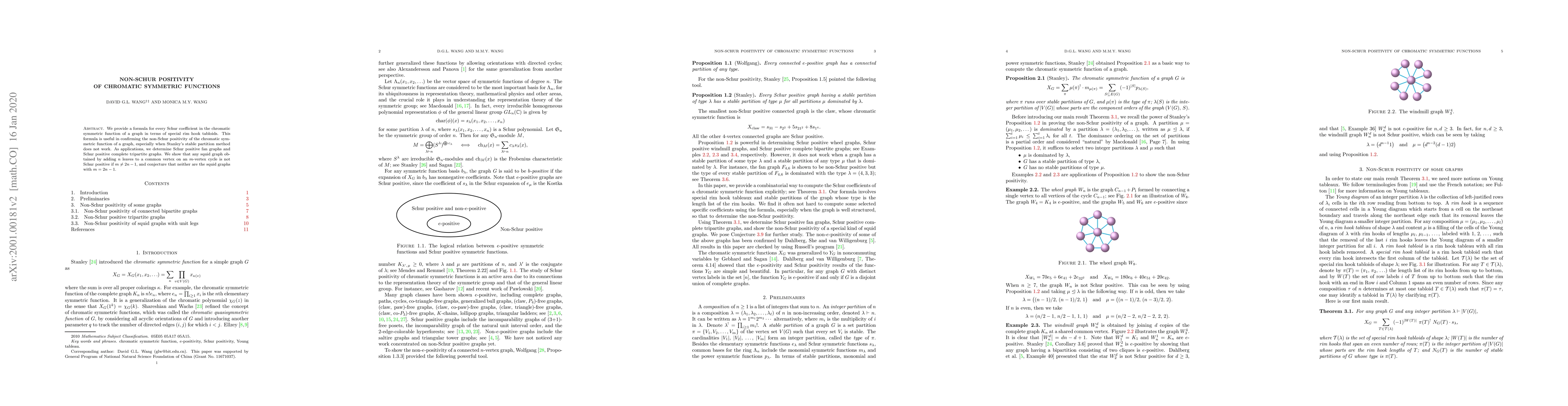 This paper provides a formula to determine Schur coefficients in chromatic symmetric functions of graphs via special rim hook tabloids, confirming their non-Schur positivity when traditional methods fail. It applies this to establish Schur positivity for fan graphs and complete tripartite graphs, and demonstrates non-positivity for squid graphs unless $m = 2n-1$, with a conjecture regarding these cases.