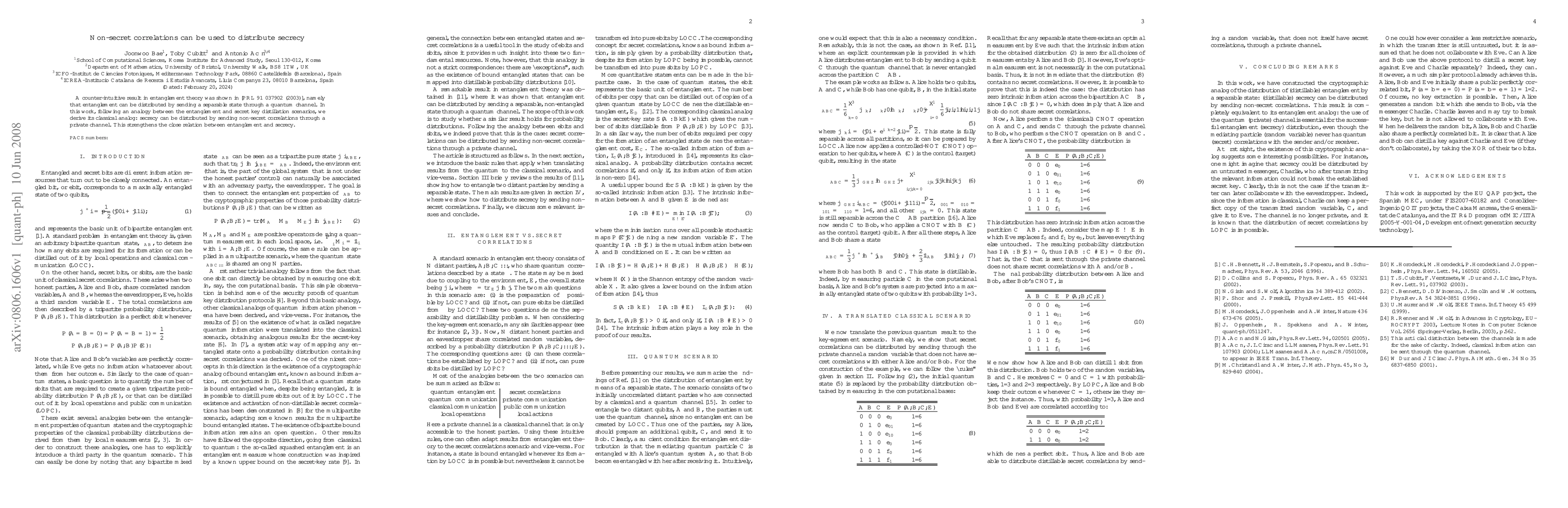 This paper demonstrates that non-secret correlations can be used to distribute secrecy through a private channel, analogous to how entanglement can be distributed in quantum systems. This finding underscores the deep connection between entanglement and secret key distillation in quantum information theory.