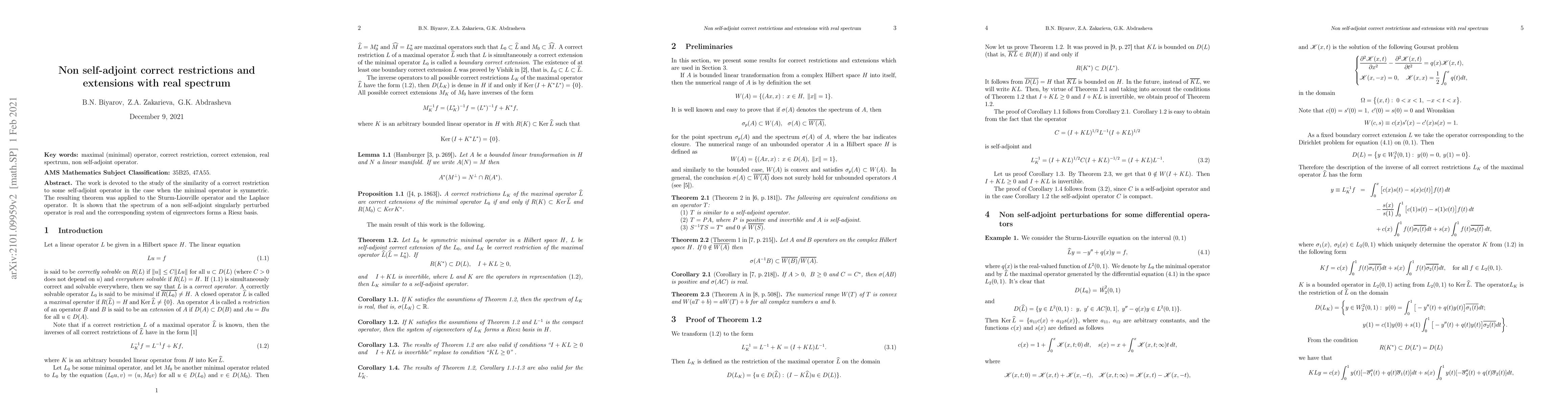 A study found that non self-adjoint operators with a symmetric minimal operator have real spectra and corresponding eigenvectors that form a Riesz basis, applying to the Sturm-Liouville operator and Laplace operator.