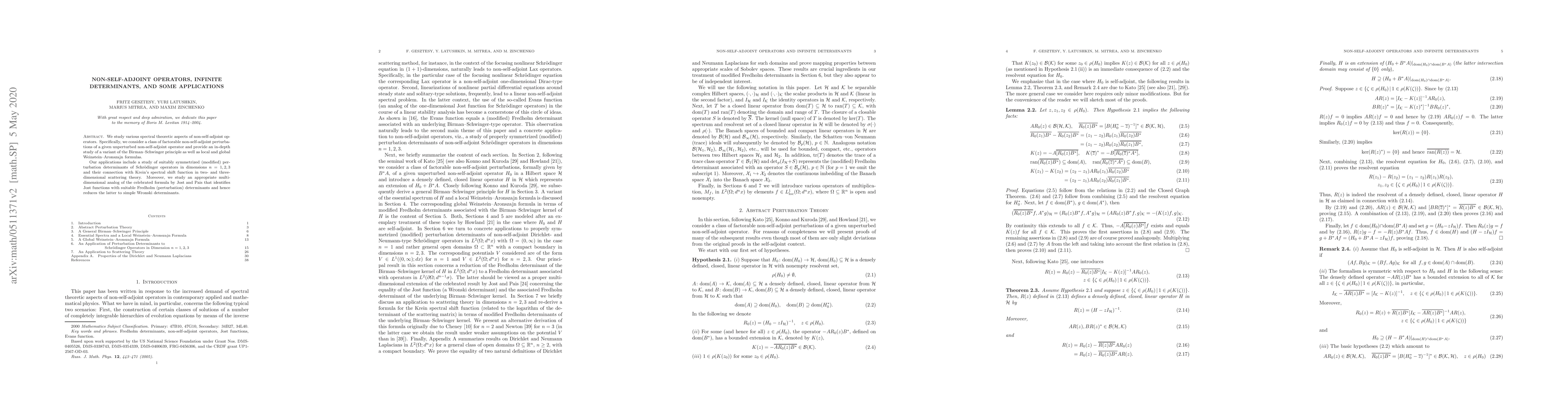 This paper investigates spectral properties of non-self-adjoint operators, focusing on factorable perturbations and applying the Birman-Schwinger principle and Weinstein-Aronszajn formulas. The study extends to perturbation determinants of Schrödinger operators and their relation to Krein's spectral shift function in scattering theory.