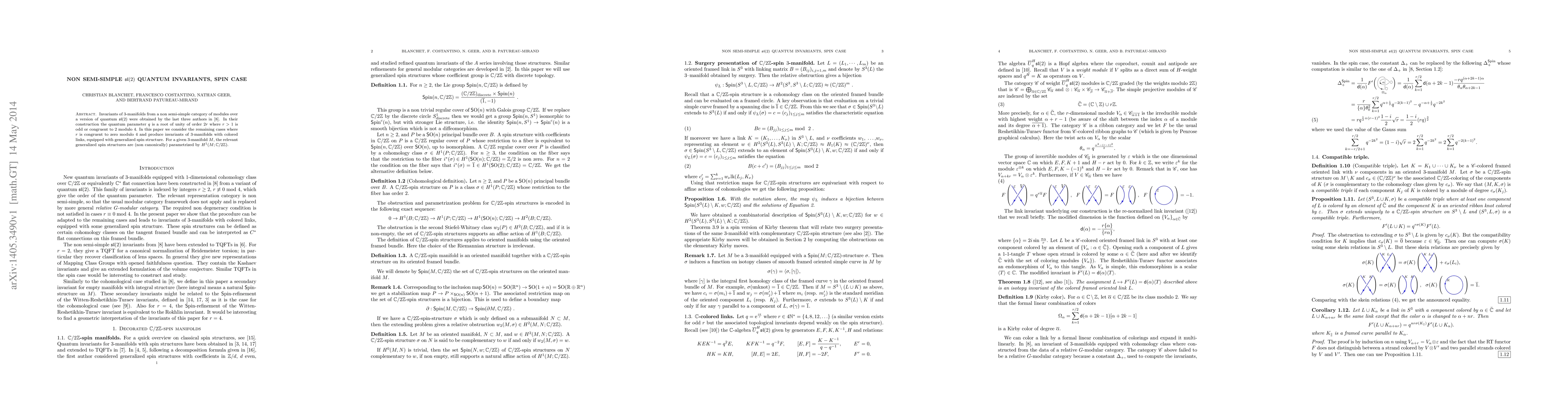 Invariants of 3-manifolds from a non semi-simple category of modules over a version of quantum sl(2) were obtained by the last three authors in [arXiv:1404.7289]. In their construction the quantum parameter $q$ is a root of unity of order $2r$ where $r>1$ is odd or congruent to $2$ modulo $4$. In this paper we consider the remaining cases where $r$ is congruent to zero modulo $4$ and produce invariants of $3$-manifolds with colored links, equipped with generalized spin structure. For a given $3$-manifold $M$, the relevant generalized spin structures are (non canonically) parametrized by $H^1(M;\mathbb C/2\mathbb Z)$.