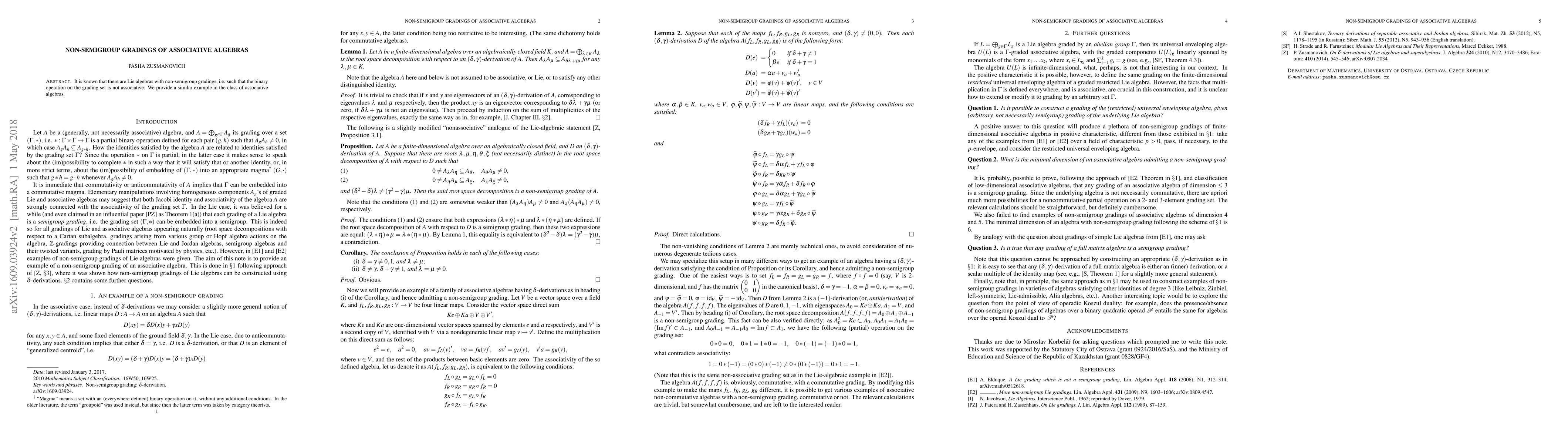 Title: Non-semigroup gradings of associative algebras Summary: The paper demonstrates the existence of associative algebras with gradings where the binary operation on the grading set fails to be associative, expanding the concept of non-semigroup gradings beyond Lie algebras.