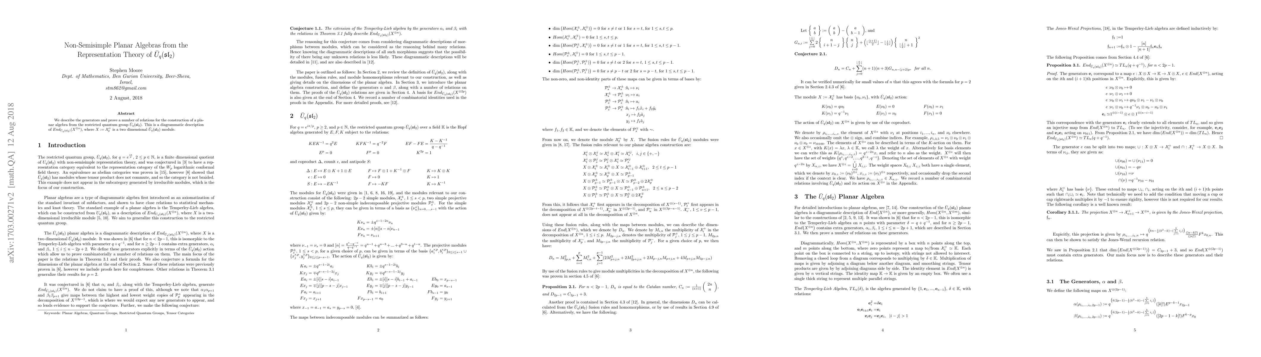 Summary: The paper constructs a non-semisimple planar algebra from the representation theory of the restricted quantum group $\bar{U}_{q}(\mathfrak{sl}_{2})$ and identifies its generators and relations, providing a diagrammatic representation of endomorphisms of tensor products of a specific two-dimensional module.