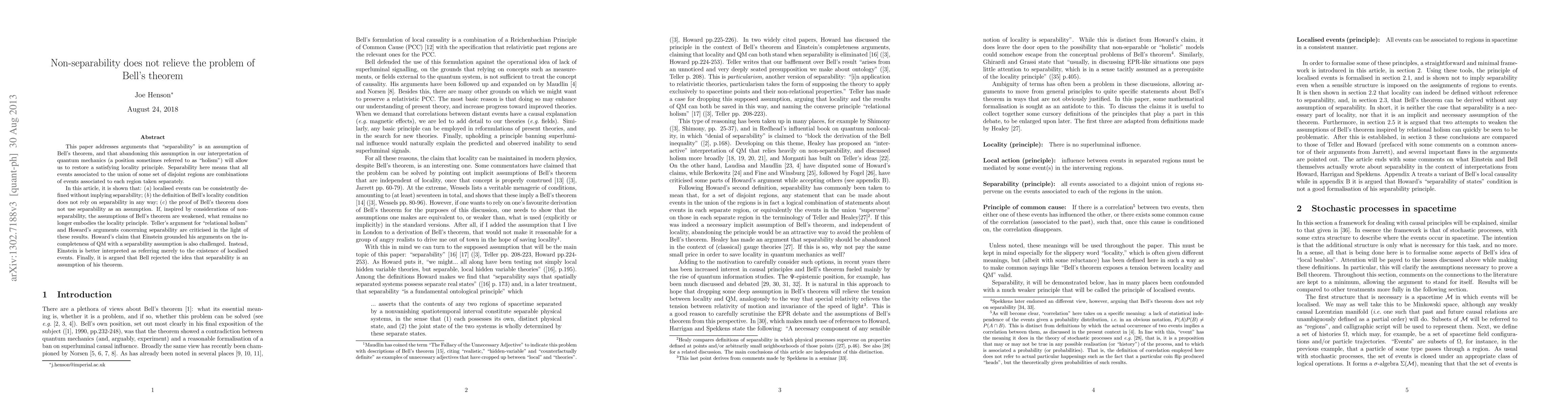 This paper demonstrates that non-separability does not resolve the issues raised by Bell's theorem, as the theorem's locality principle remains intact without reliance on separability, challenging interpretations that suggest otherwise. Einstein's arguments are reinterpreted, emphasizing localized events rather than separability.