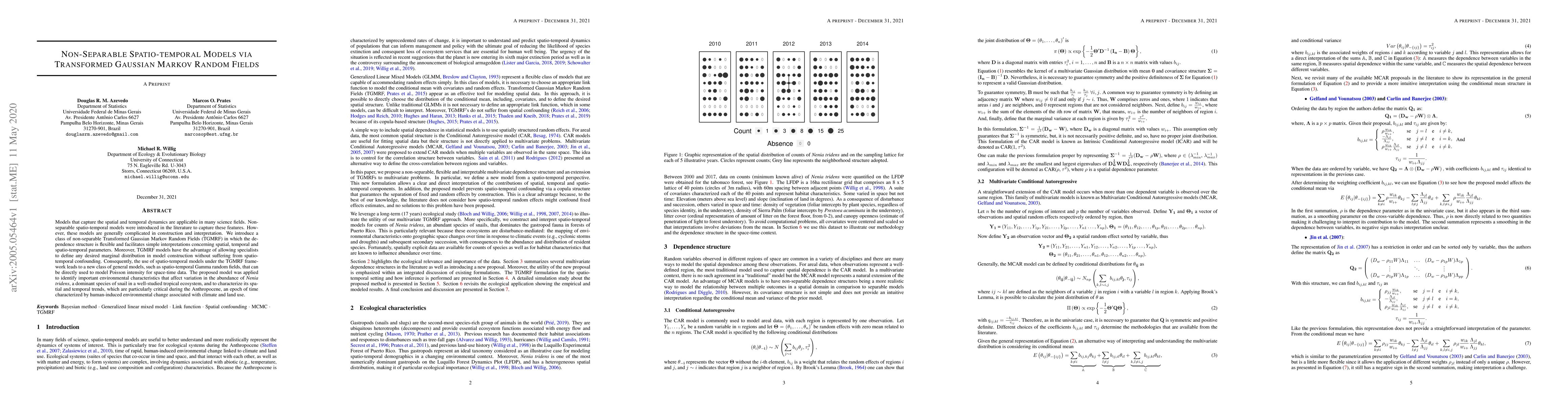 This paper introduces non-separable Transformed Gaussian Markov Random Fields (TGMRF) to model complex spatio-temporal dynamics, offering flexible dependence structures and straightforward interpretations. The TGMRF model is applied to study the spatial and temporal trends of Nenia tridens snail abundance in a tropical ecosystem, highlighting its utility in environmental research.
