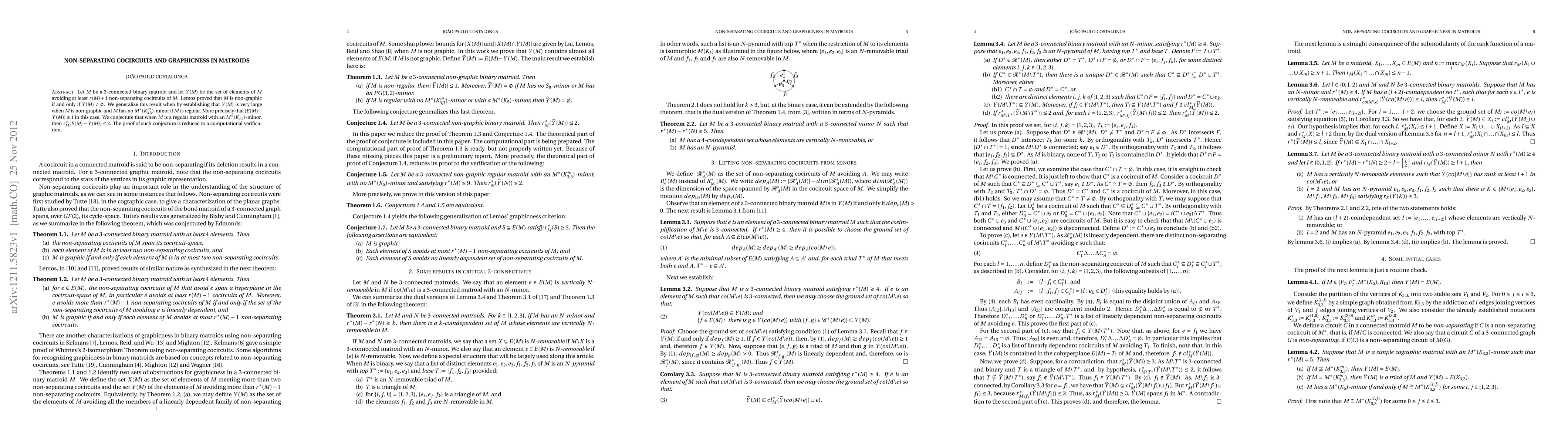 Let $M$ be a 3-connected binary matroid and let $Y(M)$ be the set of elements of $M$ avoiding at least $r(M)+1$ non-separating cocircuits of $M$. Lemos proved that $M$ is non-graphic if and only if $Y(M)\neq\emp$. We generalize this result when by establishing that $Y(M)$ is very large when $M$ is non-graphic and $M$ has no $M\s(K_{3,3}"')$-minor if $M$ is regular. More precisely that $|E(M)-Y(M)|\le 1$ in this case. We conjecture that when $M$ is a regular matroid with an $M\s(K_{3,3})$-minor, then $r\s_M(E(M)-Y(M))\le 2$. The proof of such conjecture is reduced to a computational verification.
