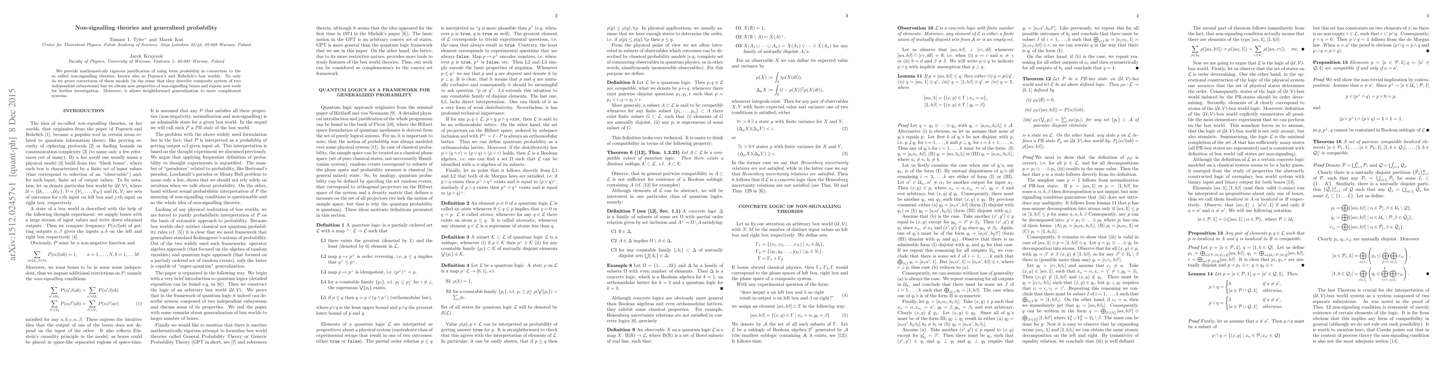 This paper rigorously justifies the use of "probability" in non-signalling theories, proving their correctness for composite systems and uncovering new properties of non-signalling boxes, which also facilitate generalization to more complex systems.