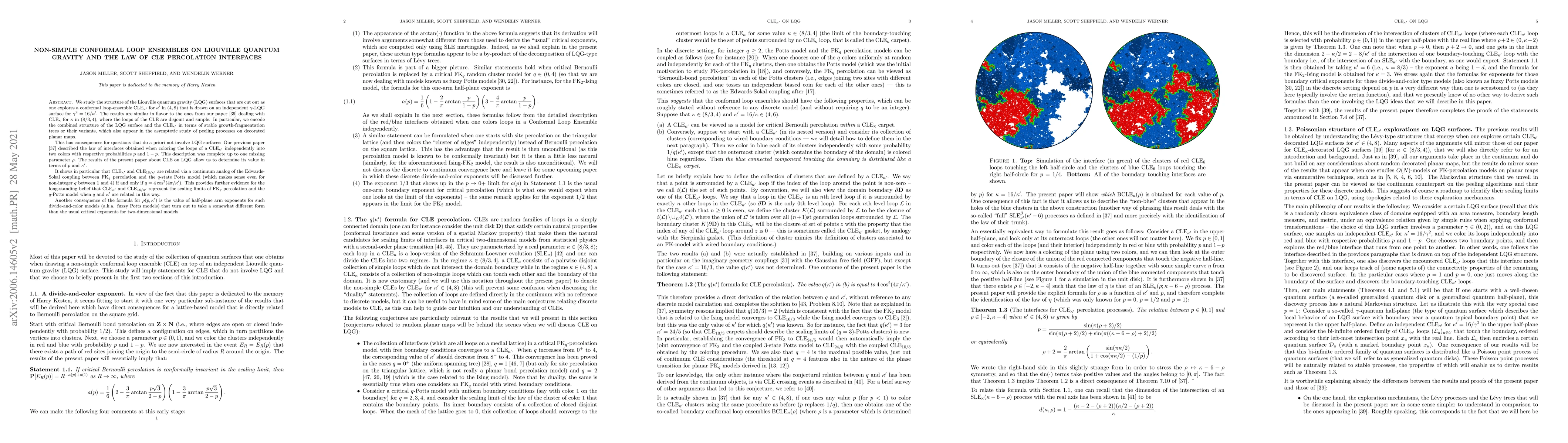This paper investigates the structure of Liouville quantum gravity (LQG) surfaces intersected by non-simple conformal loop ensembles (CLE$_{\kappa'}$) for $\kappa'$ in $(4,8)$. It reveals a connection between CLE percolation interfaces and LQG, determining a missing parameter $\rho$ and showing a relationship between CLE$_{\kappa'}$ and CLE$_{16/\kappa'}$ via a continuum analog of the Edwards-Sokal coupling.