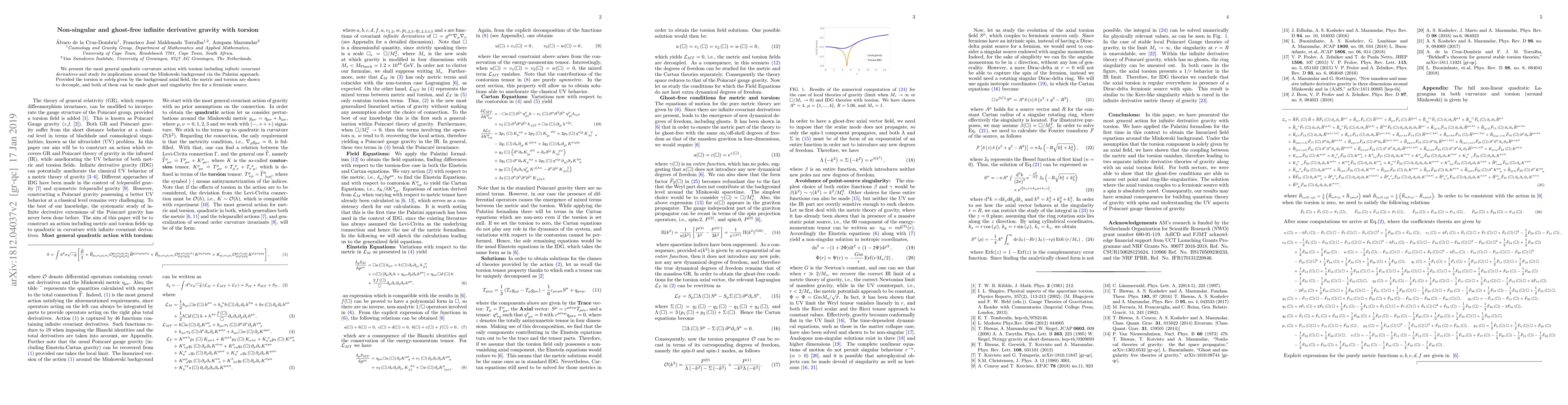This paper introduces a quadratic curvature action with torsion involving infinite covariant derivatives, ensuring no ghosts or singularities around Minkowski background with fermionic sources. The metric and torsion decouple when torsion is solely from the background axial field.