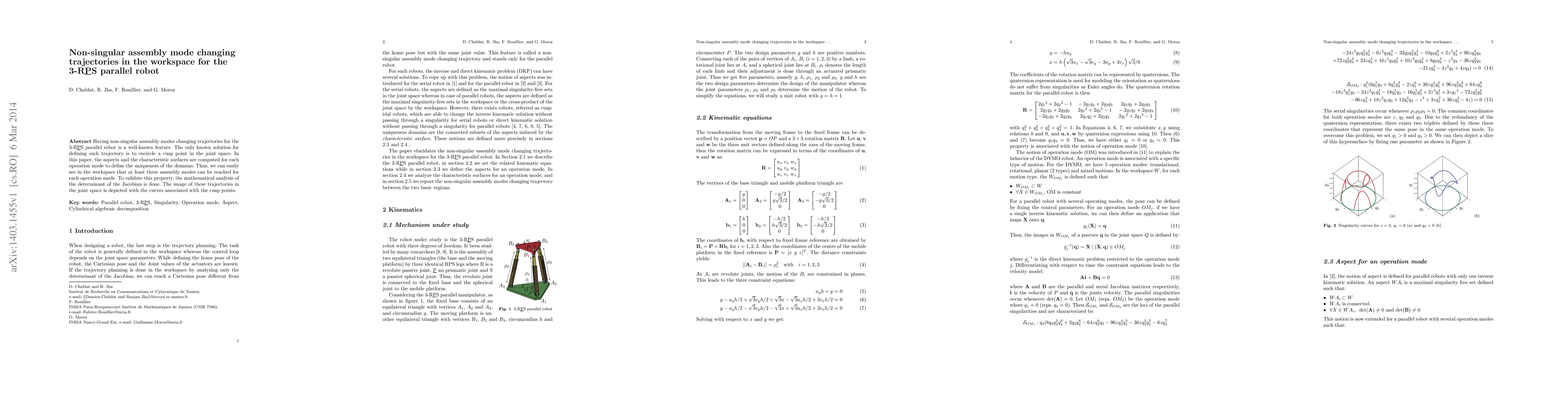 This paper investigates the non-singular assembly modes of a 3-RPS parallel robot, demonstrating that multiple assembly modes can be accessed through unique trajectories. It employs mathematical analysis to define characteristic surfaces and validate the presence of at least three reachable assembly modes per operation mode, illustrated by the Jacobian determinant and joint space curves.