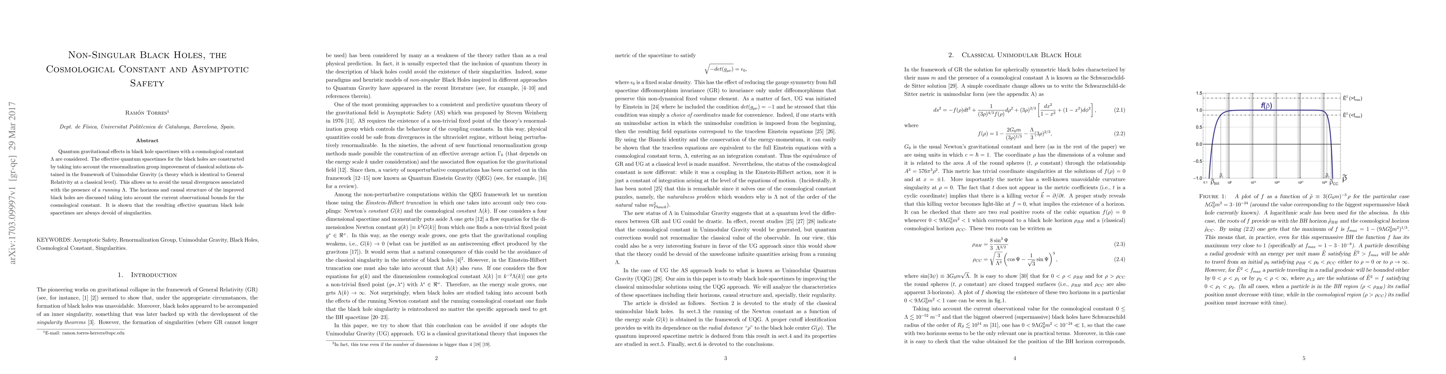 This paper constructs non-singular black hole spacetimes by incorporating quantum gravitational effects and renormalization group improvements in the context of Unimodular Gravity, avoiding divergences from a running cosmological constant. The resulting black holes are free of singularities, consistent with current observational bounds.