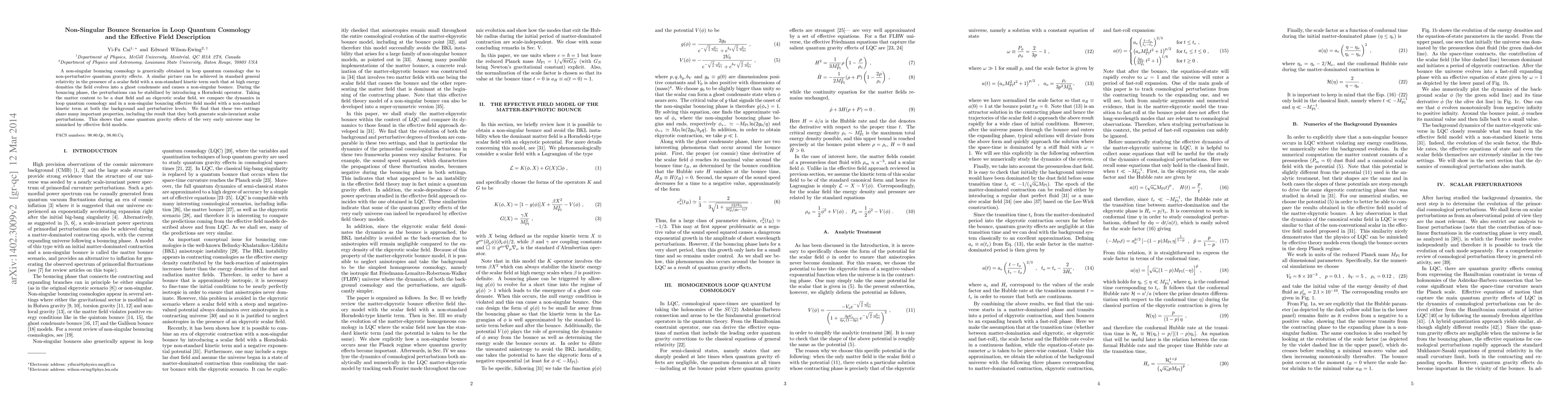 This paper explores non-singular bouncing cosmologies in loop quantum cosmology and compares them to effective field models with non-standard kinetic terms. It finds that both approaches generate scale-invariant scalar perturbations, suggesting that quantum gravity effects can be mimicked by effective field models.
