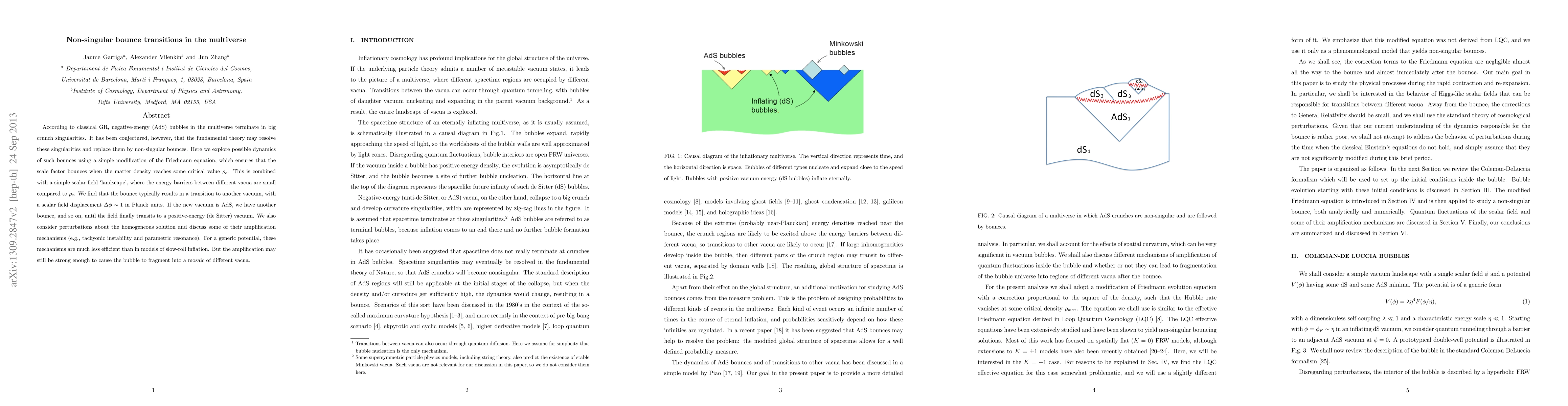 According to classical GR, negative-energy (AdS) bubbles in the multiverse terminate in big crunch singularities. It has been conjectured, however, that the fundamental theory may resolve these singularities and replace them by non-singular bounces. Here we explore possible dynamics of such bounces using a simple modification of the Friedmann equation, which ensures that the scale factor bounces when the matter density reaches some critical value $\rho_c$. This is combined with a simple scalar field `landscape', where the energy barriers between different vacua are small compared to $\rho_c$. We find that the bounce typically results in a transition to another vacuum, with a scalar field displacement $\Delta\phi \sim 1$ in Planck units. If the new vacuum is AdS, we have another bounce, and so on, until the field finally transits to a positive-energy (de Sitter) vacuum. We also consider perturbations about the homogeneous solution and discuss some of their amplification mechanisms (e.g., tachyonic instability and parametric resonance). For a generic potential, these mechanisms are much less efficient than in models of slow-roll inflation. But the amplification may still be strong enough to cause the bubble to fragment into a mosaic of different vacua.