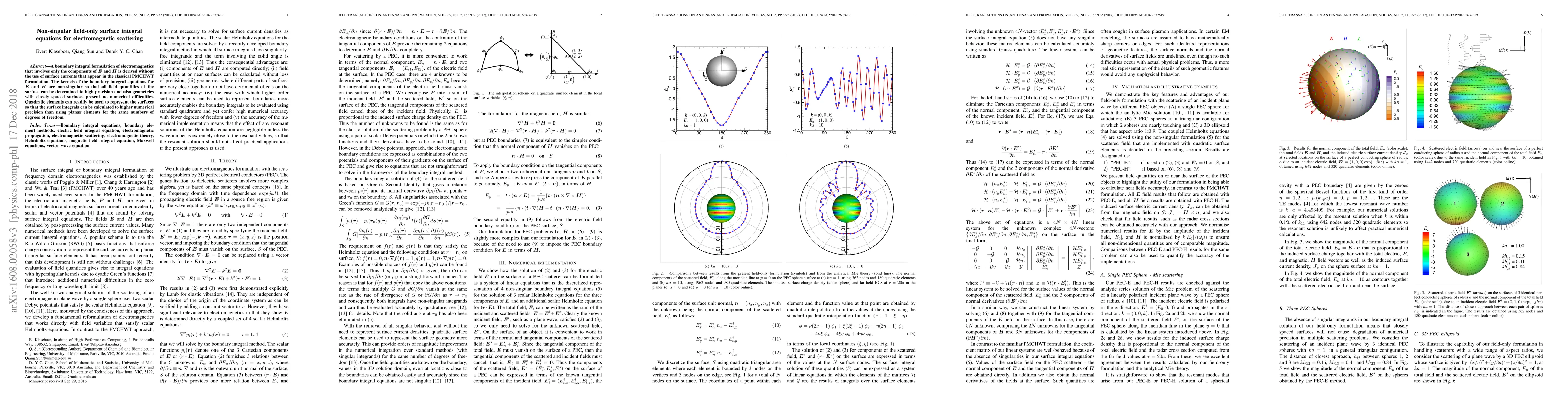 This paper introduces a non-singular field-only surface integral equation for electromagnetic scattering, eliminating surface currents and using non-singular kernels for high-precision field determination. It allows for the use of quadratic elements, enhancing numerical precision compared to planar elements.