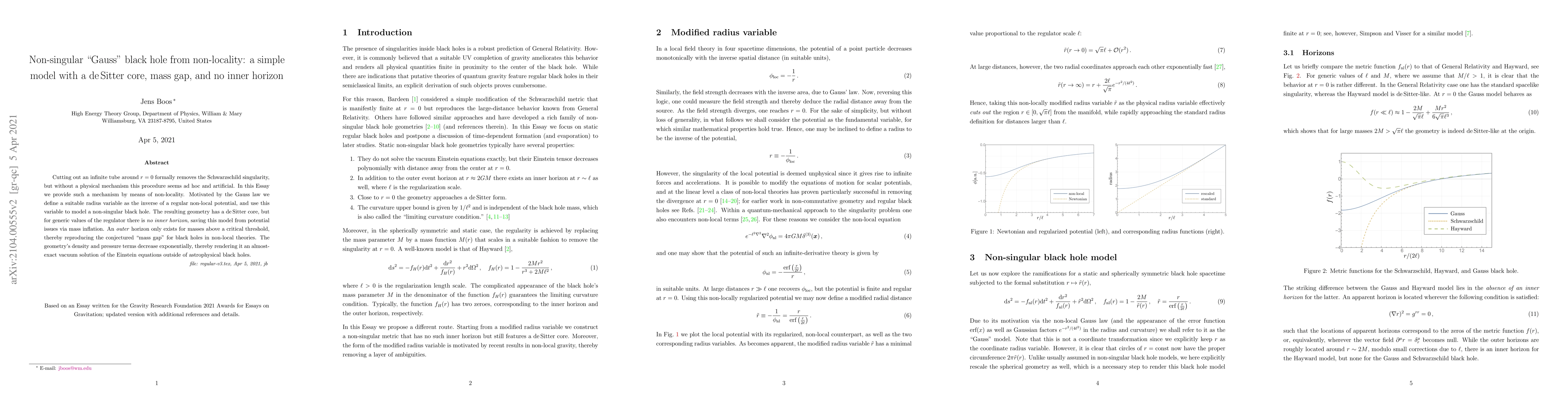 Researchers propose a new model for non-singular black holes using non-locality, which produces a de Sitter core without an inner horizon, and exhibits a mass gap above a critical threshold.