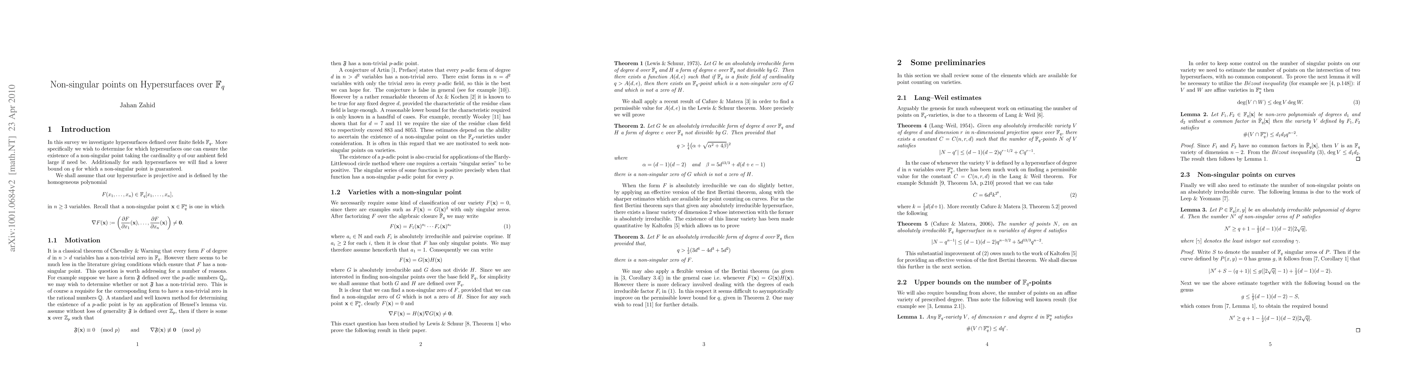 We survey a number of results on the counting of points on hypersurfaces defined over finite fields. We also investigate when one can be guaranteed a non-singular point on a projective hypersurface and give a condition on the cardinality of the ambient field to achieve this.