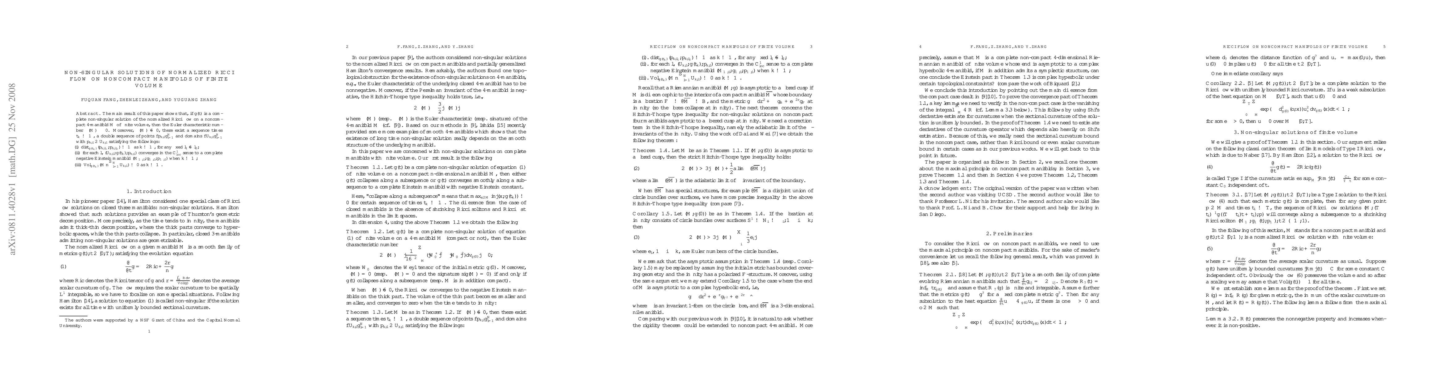 The main result of this paper shows that, if $g(t)$ is a complete non-singular solution of the normalized Ricci flow on a noncompact 4-manifold $M$ of finite volume, then the Euler characteristic number $\chi(M)\geq0$. Moreover, $\chi(M)\neq 0$, there exist a sequence times $t_k\to\infty$, a double sequence of points $\{p_{k,l}\}_{l=1}^{N}$ and domains $\{U_{k,l}\}_{l=1}^{N}$ with $p_{k,l}\in U_{k,l}$ satisfying the followings: [(i)] $\dist_{g(t_k)}(p_{k,l_1},p_{k,l_2})\to\infty$ as $k\to\infty$, for any fixed $l_1\neq l_2$; [(ii)] for each $l$, $(U_{k,l},g(t_k),p_{k,l})$ converges in the $C_{loc}^\infty$ sense to a complete negative Einstein manifold $(M_{\infty,l},g_{\infty,l},p_{\infty,l})$ when $k\to\infty$; [(iii)] $\Vol_{g(t_{k})}(M\backslash\bigcup_{l=1}^{N}U_{k,l})\to0$ as $k\to\infty$.