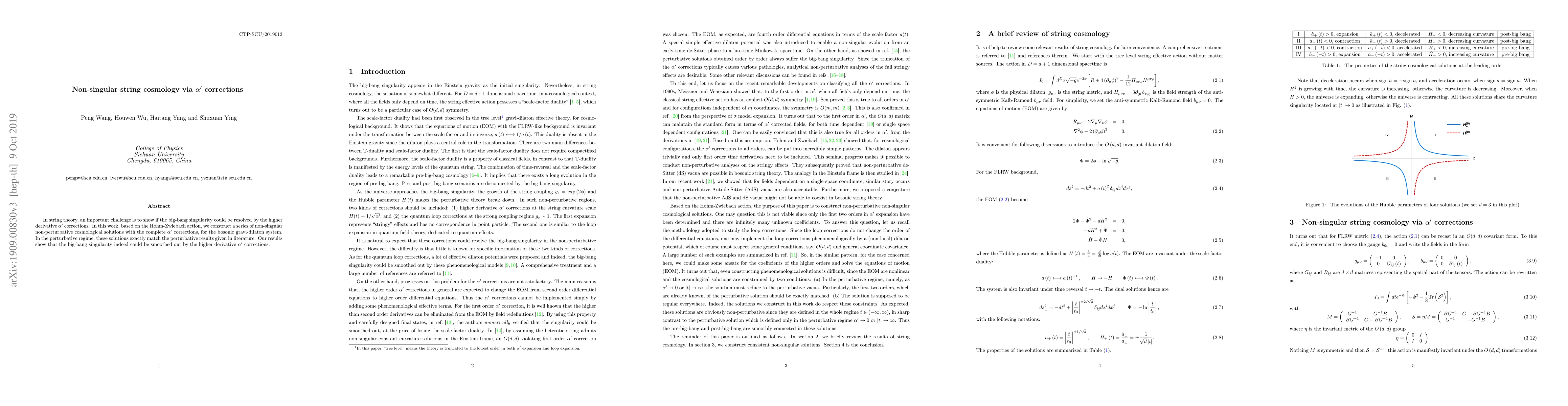 This research paper demonstrates that string theory's $eta'$ corrections can resolve the big-bang singularity, creating non-singular cosmological solutions.