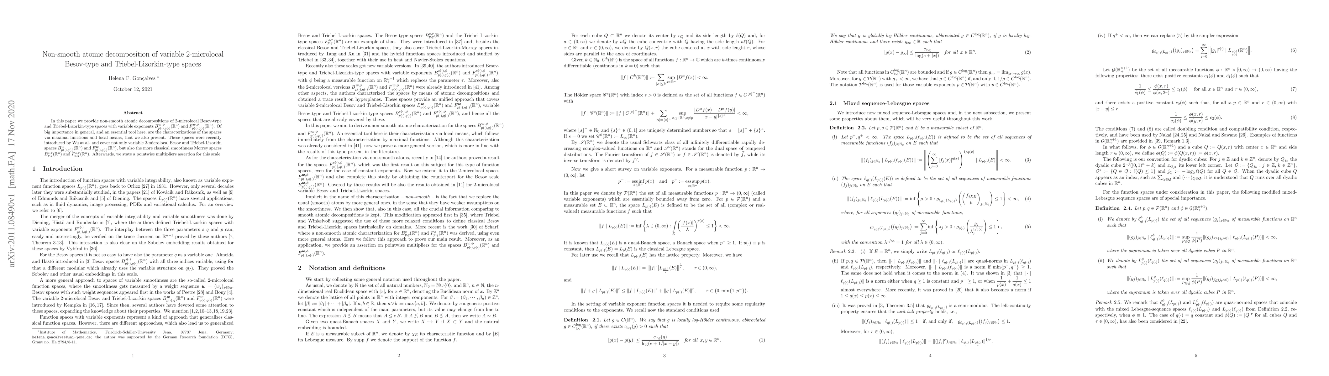 In this paper we provide non-smooth atomic decompositions of 2-microlocal Besov-type and Triebel-Lizorkin-type spaces with variable exponents $B^{\mathrm{\boldsymbol{\omega}}, \phi}_{p(\cdot),q(\cdot)}(\mathbb{R}^n)$ and $F^{\mathrm{\boldsymbol{\omega}}, \phi}_{p(\cdot),q(\cdot)}(\mathbb{R}^n)$. Of big importance in general, and an essential tool here, are the characterizations of the spaces via maximal functions and local means, that we also present. These spaces were recently introduced by Wu at al. and cover not only variable 2-microlocal Besov and Triebel-Lizorkin spaces $B^{\mathrm{\boldsymbol{\omega}}}_{p(\cdot),q(\cdot)}(\mathbb{R}^n)$ and $F^{\mathrm{\boldsymbol{\omega}}}_{p(\cdot),q(\cdot)}(\mathbb{R}^n)$, but also the more classical smoothness Morrey spaces $B^{s, \tau}_{p,q}(\mathbb{R}^n)$ and $F^{s,\tau}_{p,q}(\mathbb{R}^n)$. Afterwards, we state a pointwise multipliers assertion for this scale.