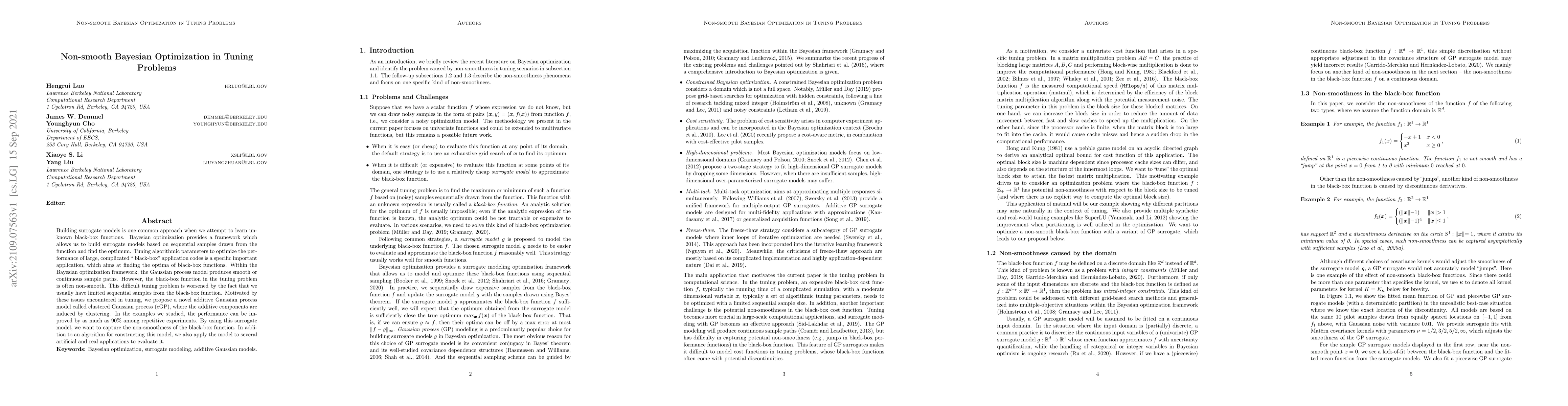 This paper proposes a clustered Gaussian process (cGP) model for non-smooth Bayesian optimization in tuning problems, addressing the limitations of smooth Gaussian processes. The cGP model, which incorporates clustering to capture non-smoothness, shows up to 90% performance improvement in repetitive experiments.