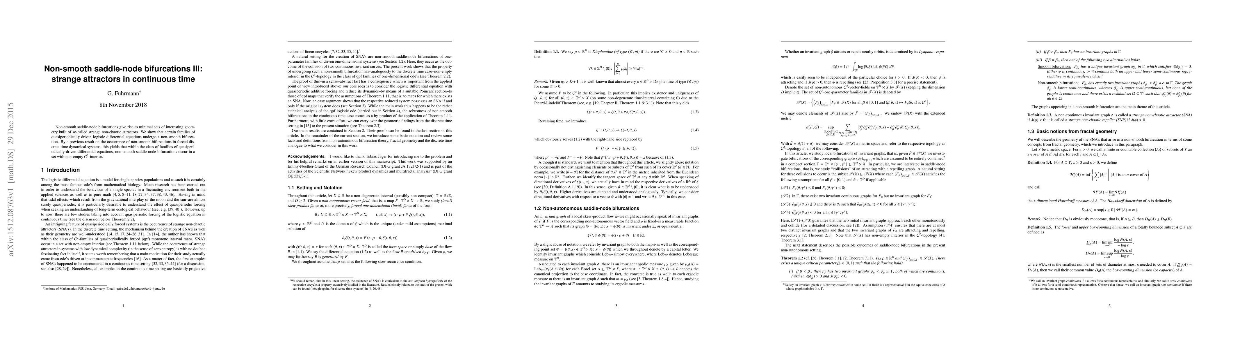 The research investigates non-smooth saddle-node bifurcations in quasiperiodically driven logistic differential equations, demonstrating the emergence of strange non-chaotic attractors. It concludes that such bifurcations occur in a set with non-empty C2-interior within the class of quasiperiodically driven differential equations.