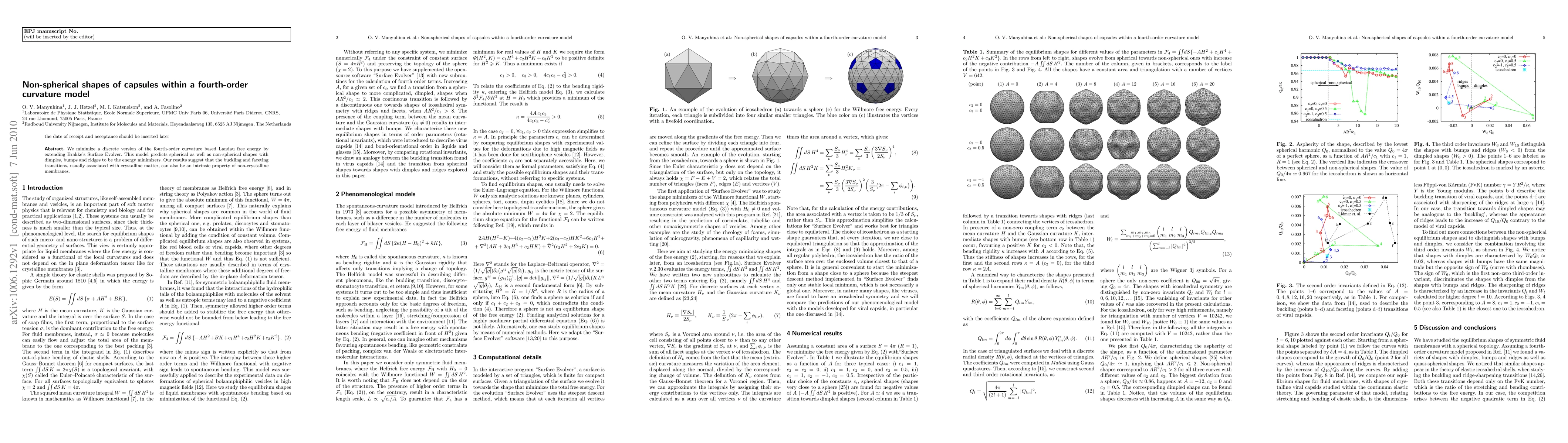 We minimize a discrete version of the fourth-order curvature based Landau free energy by extending Brakke's Surface Evolver. This model predicts spherical as well as non-spherical shapes with dimples, bumps and ridges to be the energy minimizers. Our results suggest that the buckling and faceting transitions, usually associated with crystalline matter, can also be an intrinsic property of non-crystalline membranes.