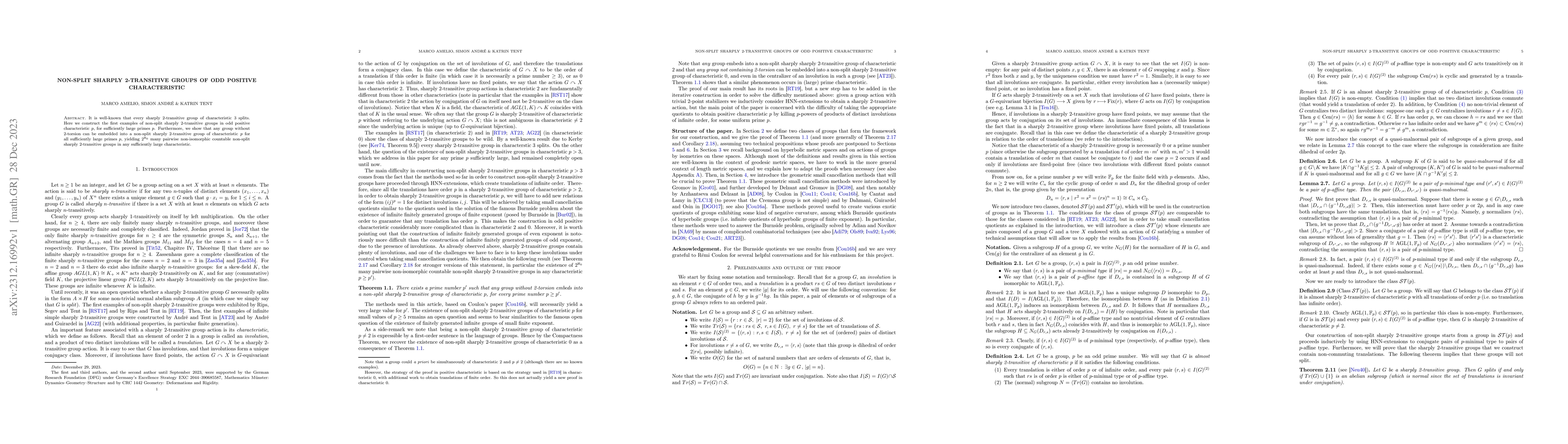This paper constructs the first examples of non-split sharply 2-transitive groups in odd positive characteristic $p$ for sufficiently large primes $p$. It also demonstrates that any group without 2-torsion can be embedded into such groups, resulting in $2^{\aleph_0}$ many pairwise non-isomorphic countable examples.