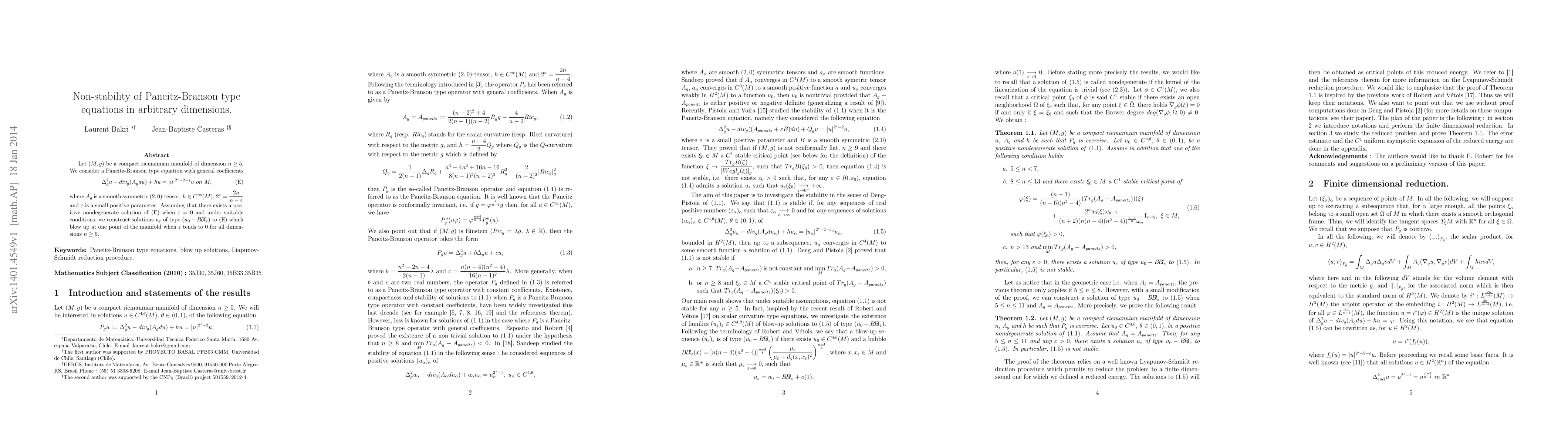Let $(M,g)$ be a compact riemannian manifold of dimension $n\geq 5$. We are interested in the stability of a slighly subcritical Paneitz-Branson type equation on $M$. Assuming that there exists a positive nondegenerate solution of the critical equation and under suitable conditions, we prove that this equation is not stable for all $n\geq 5$.
