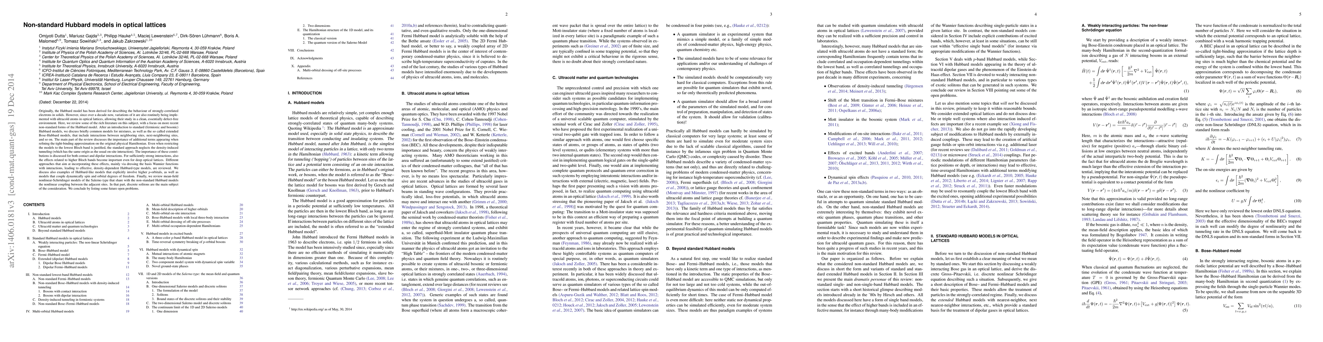 This paper reviews the evolution of the Hubbard model for ultracold atoms in optical lattices, focusing on non-standard variations. It discusses extended models including interactions beyond nearest neighbors and the importance of density-induced tunneling, highlighting the significance of higher Bloch bands and orbitals. The paper also covers mean-field models and solitons, concluding with open research questions.