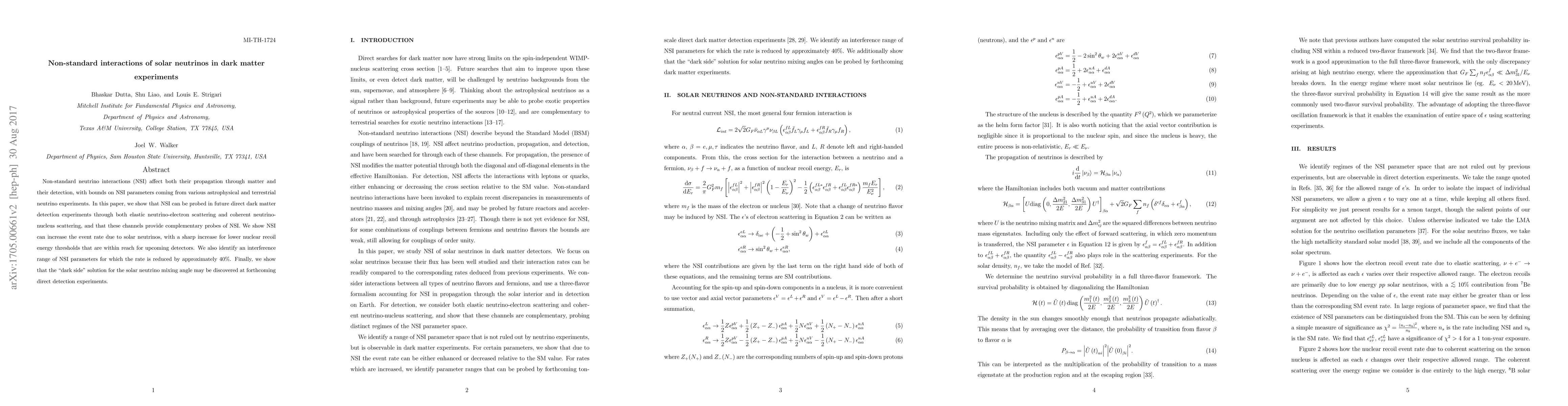 Non-standard neutrino interactions (NSI) affect both their propagation through matter and their detection, with bounds on NSI parameters coming from various astrophysical and terrestrial neutrino experiments. In this paper, we show that NSI can be probed in future direct dark matter detection experiments through both elastic neutrino-electron scattering and coherent neutrino-nucleus scattering, and that these channels provide complementary probes of NSI. We show NSI can increase the event rate due to solar neutrinos, with a sharp increase for lower nuclear recoil energy thresholds that are within reach for upcoming detectors. We also identify an interference range of NSI parameters for which the rate is reduced by approximately 40\%. Finally, we show that the "dark side" solution for the solar neutrino mixing angle may be discovered at forthcoming direct detection experiments.