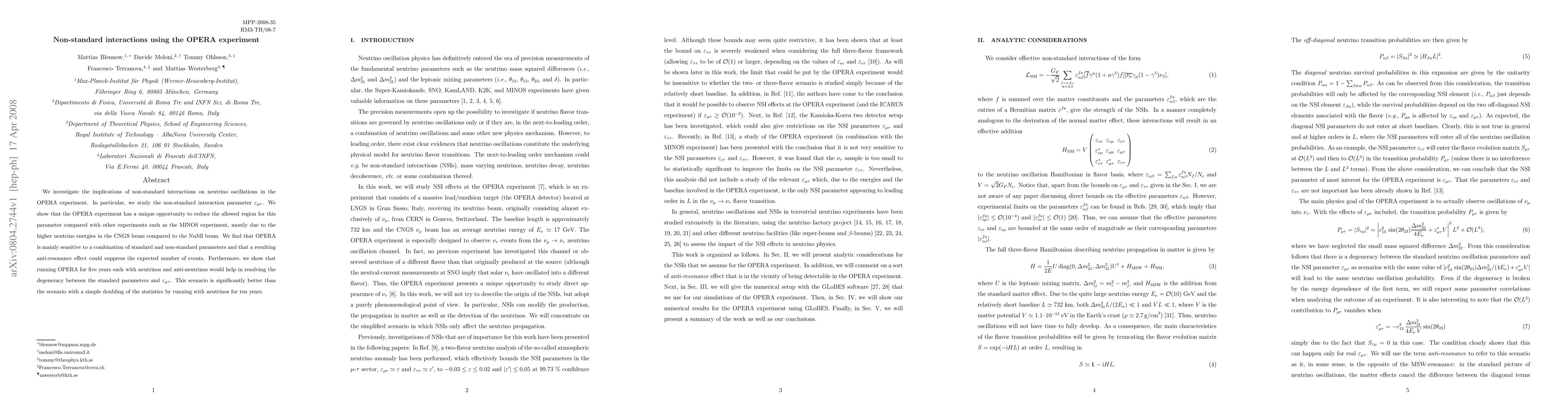 The OPERA experiment investigates non-standard interactions affecting neutrino oscillations, focusing on the parameter $\epsilon_{\mu\tau}$. It finds OPERA uniquely positioned to constrain this parameter due to higher neutrino energies, potentially revealing an anti-resonance effect that suppresses event counts. A five-year run with both neutrinos and anti-neutrinos is suggested to resolve parameter degeneracies more effectively than a ten-year run with neutrinos alone.
