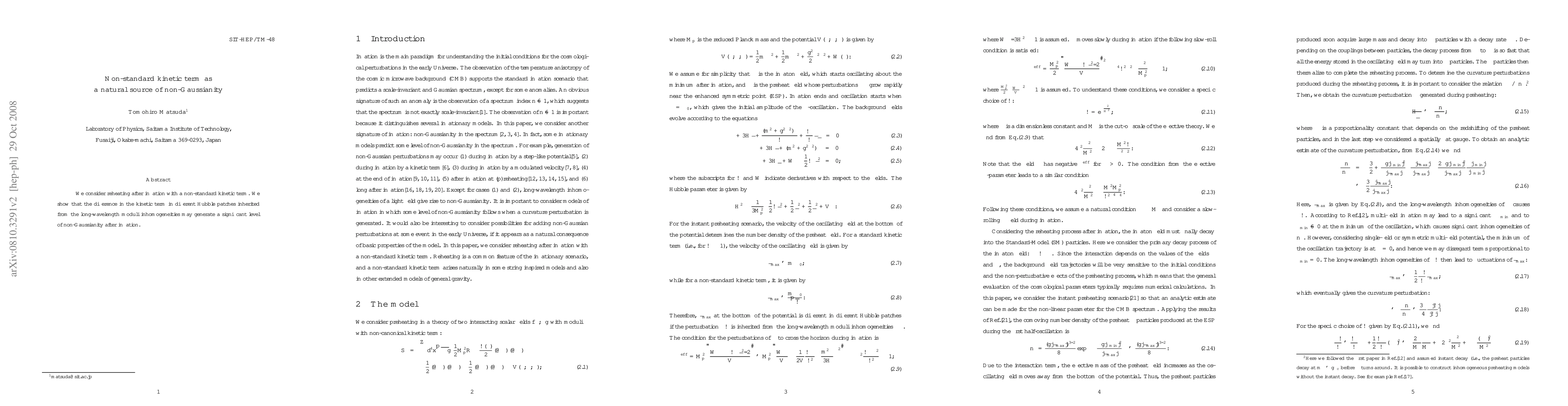 This paper explores reheating post-inflation with a non-standard kinetic term, demonstrating that differences in kinetic terms across Hubble patches due to long-wavelength moduli inhomogeneities can produce substantial non-Gaussianity in the resulting cosmic field distributions.