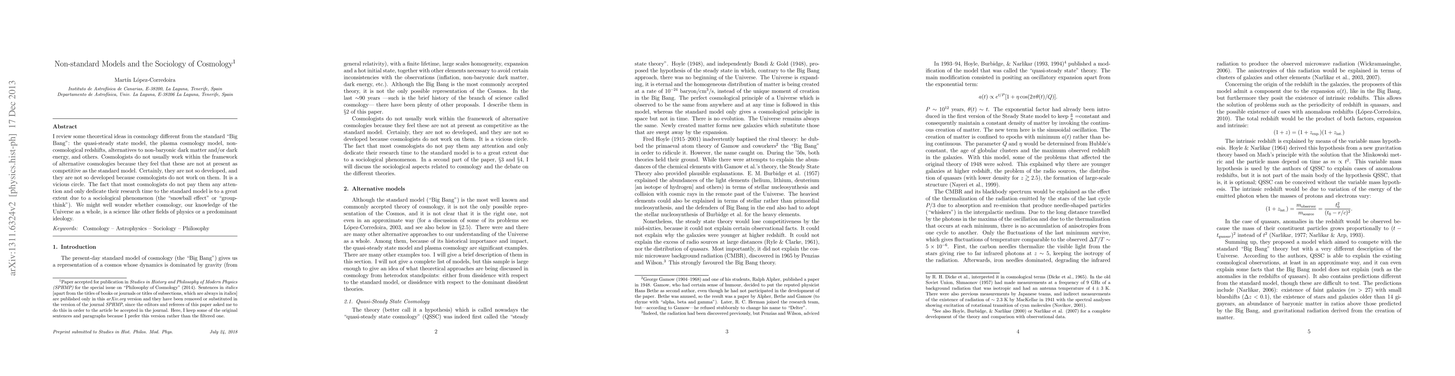I review some theoretical ideas in cosmology different from the standard "Big Bang": the quasi-steady state model, the plasma cosmology model, non-cosmological redshifts, alternatives to non-baryonic dark matter and/or dark energy, and others. Cosmologists do not usually work within the framework of alternative cosmologies because they feel that these are not at present as competitive as the standard model. Certainly, they are not so developed, and they are not so developed because cosmologists do not work on them. It is a vicious circle. The fact that most cosmologists do not pay them any attention and only dedicate their research time to the standard model is to a great extent due to a sociological phenomenon (the "snowball effect" or "groupthink"). We might well wonder whether cosmology, our knowledge of the Universe as a whole, is a science like other fields of physics or a predominant ideology.