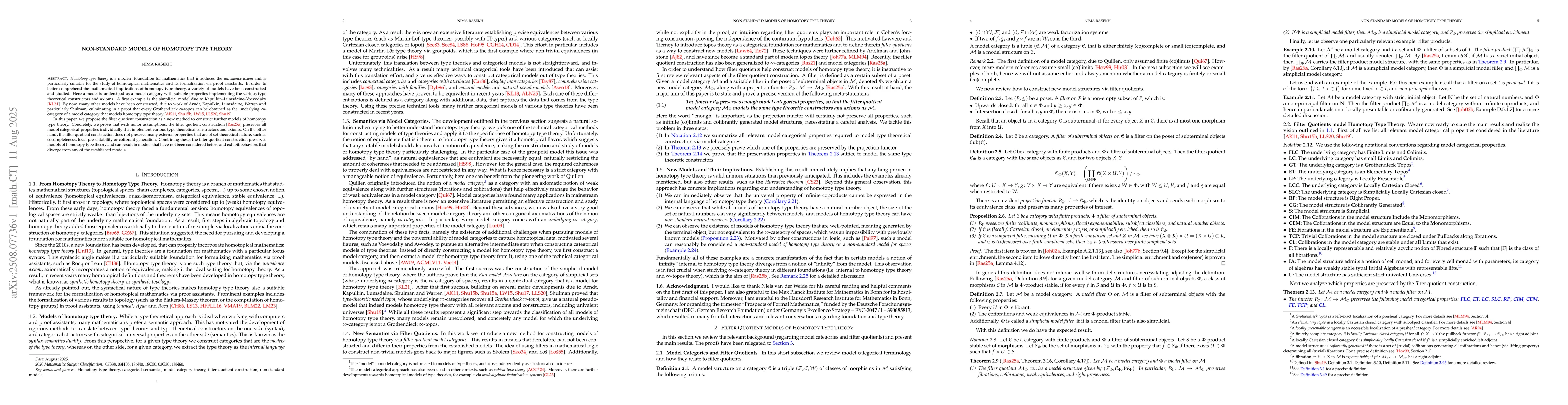 Homotopy type theory is a modern foundation for mathematics that introduces the univalence axiom and is particularly suitable for the study of homotopical mathematics and its formalization via proof assistants. In order to better comprehend the mathematical implications of homotopy type theory, a variety of models have been constructed and studied. Here a model is understood as a model category with suitable properties implementing the various type theoretical constructors and axioms. A first example is the simplicial model due to Kapulkin--Lumsdaine--Voevodsky. By now, many other models have been constructed, due to work of Arndt, Kapulkin, Lumsdaine, Warren and particularly Shulman, culminating in a proof that every Grothendieck $\infty$-topos can be obtained as the underlying $\infty$-category of a model category that models homotopy type theory. In this paper we propose the filter quotient construction as a new method to construct further models of homotopy type theory. Concretely, we prove that with minor assumptions, the filter quotient construction preserves all model categorical properties individually that implement various type theoretical constructors and axioms. On the other hand, the filter quotient construction does not preserve many external properties that are of set theoretical nature, such as cocompleteness, local presentability or cofibrant generation. Combining these, the filter quotient construction preserves models of homotopy type theory and can result in models that have not been considered before and exhibit behaviors that diverge from any of the established models.