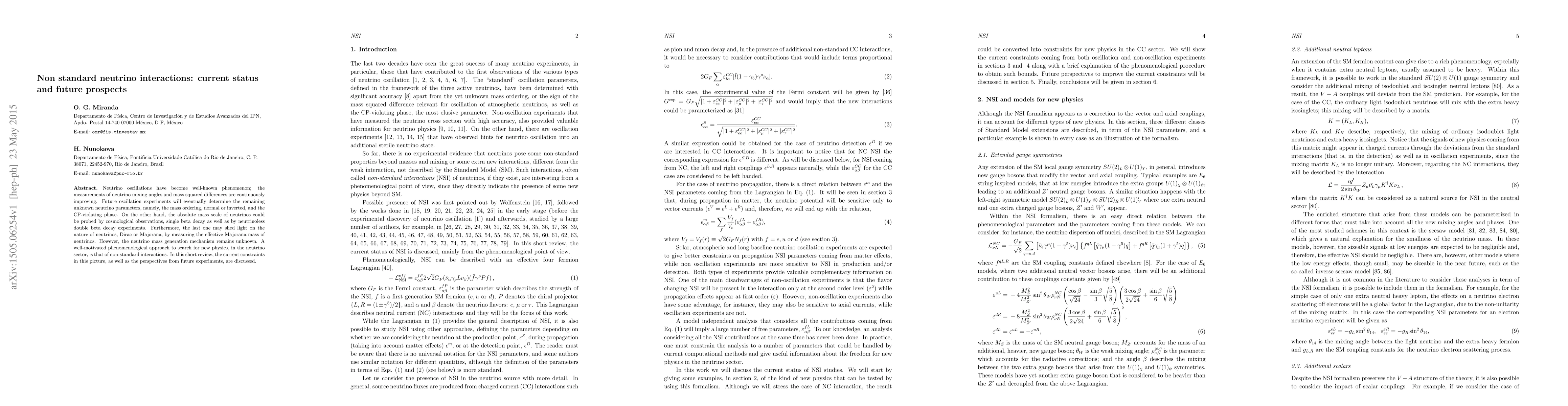 This paper reviews the current constraints and future prospects of non-standard neutrino interactions, which could reveal new physics beyond the standard model. It discusses the potential of upcoming experiments to determine the mass ordering and CP-violating phase, as well as to probe the absolute mass scale and the nature of neutrinos.