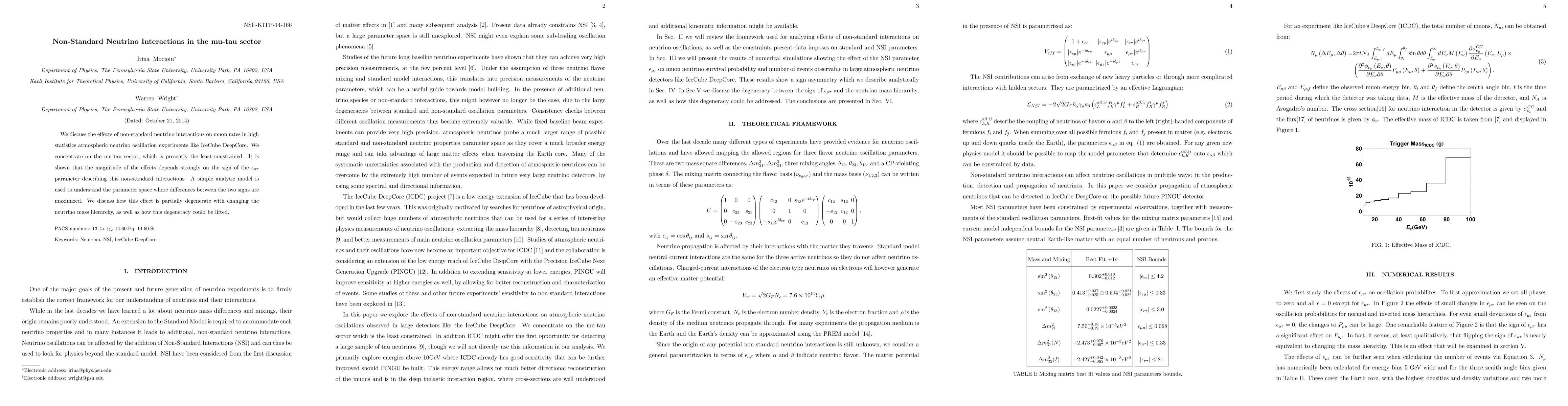 We discuss the effects of non-standard neutrino interactions on muon rates in high statistics atmospheric neutrino oscillation experiments like IceCube DeepCore. We concentrate on the mu-tau sector, which is presently the least constrained. It is shown that the magnitude of the effects depends strongly on the sign of the Epsilon_MuTau parameter describing this non-standard interactions. A simple analytic model is used to understand the parameter space where differences between the two signs are maximized. We discuss how this effect is partially degenerate with changing the neutrino mass hierarchy, as well as how this degeneracy could be lifted.